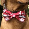Bring the style with these New York City bow ties. The NYC pattern includes many of the iconic building and statues such as the Statue of Liberty, Flatiron Building, Empire State Building, Guggenheim Museum, and the Charging Bull Statue. Additionally, the pattern includes the quintessential I love NY bag, metro card, hot dogs and of course the Central Park pigeons! Details Bow ties are double layered and made with premium cotton for a sturdier and dapper look, especially during playtime! 4" Double sided (hook-and-loop) velcro to attach to your pups collar. *Please note that each bow tie is individually made from a custom fabric. Your pups bow tie will have the same pattern as the one pictured, but will vary slightly from the photos. Made in the USA. Sizing Chart Sizes: (W x L) * Small: 3.5" x 2.5” * Medium: 4.25”x 2.5” * Large: 5" x 3" * X-Large: 6" x 4" Bow ties are handmade so there may be slight variation in sizing. Care Instructions Spot clean only.