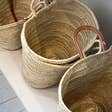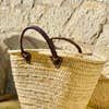 Cesta de palma resistente con doble asa, una de piel de calidad. Hecho a mano, por lo que las medidas pueden variar unos poco centímetros. Estilo y diseño único en un color natural. Medidas: 47 ancho x 29 alto cm.