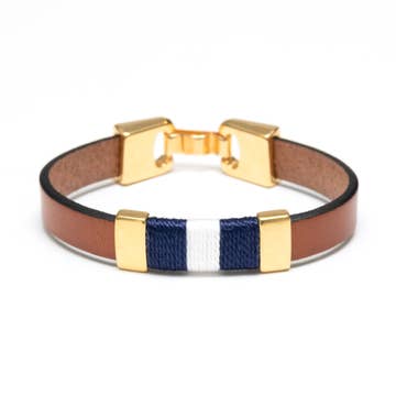 Bristol - Acajou/Bleu marine/Blanc/Doré - Bracelet en cuir en vente B2B