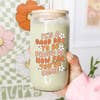 Tasse en verre de 16 oz avec couvercle en bambou In my Auntie Era en vente B2B