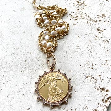 Collier avec pièce et perle de la reine Elizabeth en vente B2B
