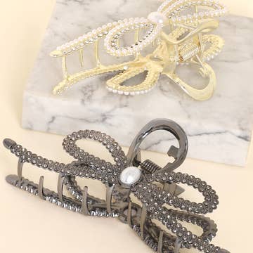 Metal Rhinestone Loop Claw Clip 1pc- Gold