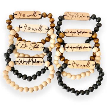 Christian Smycken - lasergraverad inspirerande tro baserade pärlstav armband. Ett kristet pärlstav armband som fungerar som en påminnelse om de löften som Gud ger oss. Absolut vackert pärlstav armband. Dessa är enkla nog för vardagligt slitage och går med allt. Dessa armband har ett stretchigt band för en lätt bit att ta på och av. Denna lista är för ett enda armband. Unisex dimensionering. För att beställa: 1. Välj vilket färgremband du vill ha. 2. Välj vilket som säger du vill. Ord tillgängliga: Guds barn Fantastisk Gr Way Maker Låt ditt ljus lysa Var stilla Det är väl Obs! På grund av träets naturliga tillstånd kan det finnas variationer i skuggan /texturen/och färgen på den graverade baren. Detta är normalt och varje bit är unik vilket gör dessa så vackra.