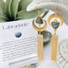 Våra WonderLight Fringe Earrings är ett fantastiskt och elegant tillskott till alla kollektioner. De har en vacker guldtofs som dinglar från en naturlig ametist ädelsten som har lindats i guldtråd. Örhängena lägger till en underbar, häpnadsväckande och unik känsla till din outfit. Dessa örhängen är tillverkade av rostfritt stål och är allergivänliga och inte fläckar så att du kan bära örhängena i många år framöver. Ametiststenen är symbolisk för skydd mot negativa influenser genom att lita på din intuition. Varje par örhängen från vår WonderLight-kollektion kommer med ett samordnande bekräftelsekort med betydelsen av varje ädelsten på ena sidan, och en anpassad astrologibekräftelse på andra sidan. STORLEK: 6 tum x .5 tum (ca 15 cm x 1 cm) MATERIAL: Naturlig ametist ädelsten, örhängenkrok i rostfritt stål FÄRG: Guld ANTAL: 1 par örhängen, 1 bekräftelsekort