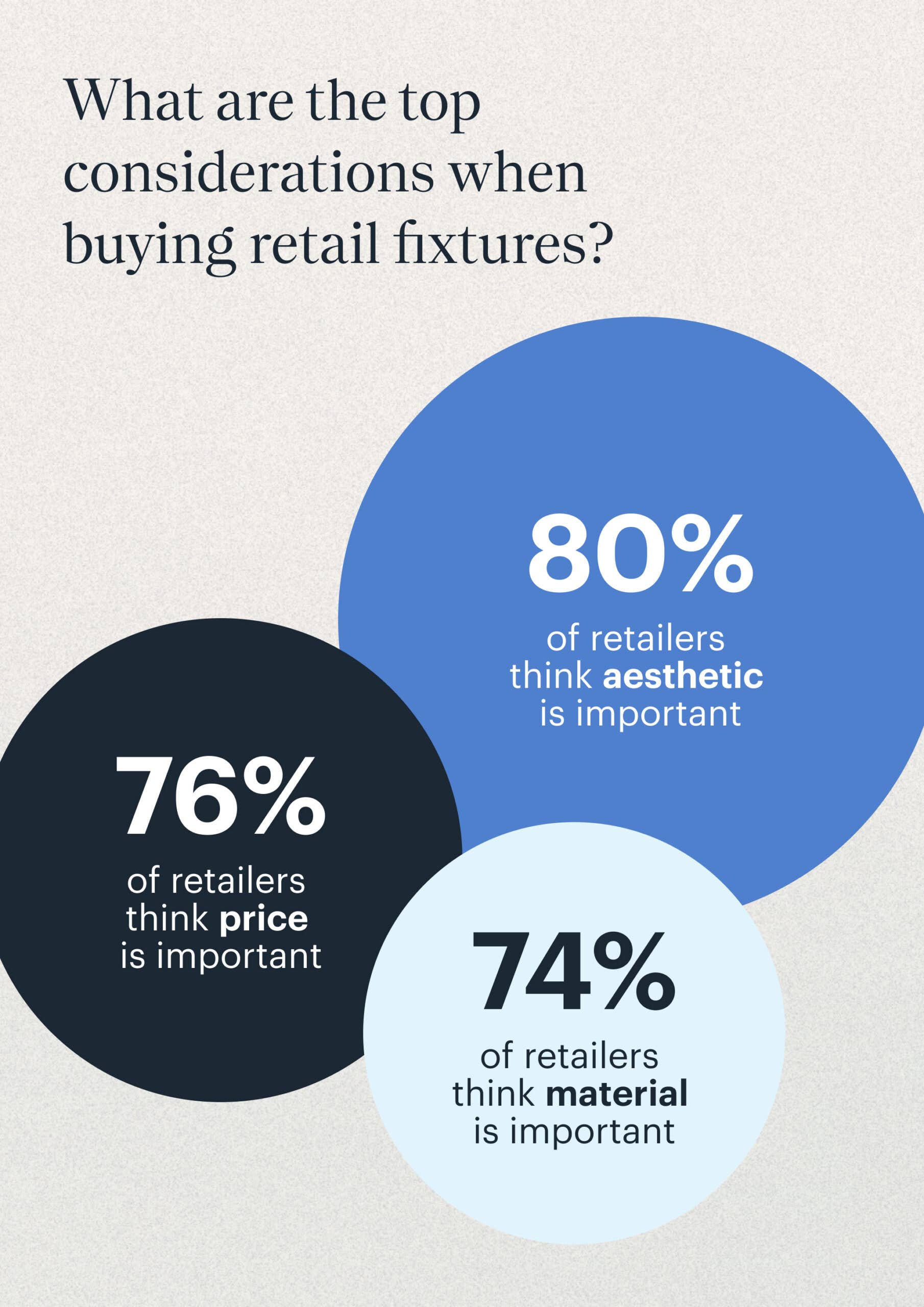When it comes to retail fixtures, 80% small business owners consider aesthetics to be the most important, with cost (76%) and durability (74%) a close second and third. They want displays that catch the eye and enhance their brand image, but not at the expense of blowing their budget. At the same time, they’re prioritizing fixtures that can stand up to daily wear and tear, ensuring a long lifespan and better return on investment. There’s a real interest in versatile options, with 63% of owners drawn to modular display systems that adapt easily to changing inventory.
