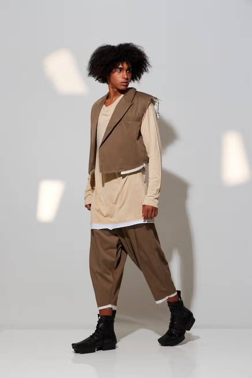 All items are made from natural, simple fibers, including cotton, linen, wool, and leather. And we particularly adore this sleeveless jacket is a modern take on the utilitarian style, mixing smart and casual in a neutral color palette.