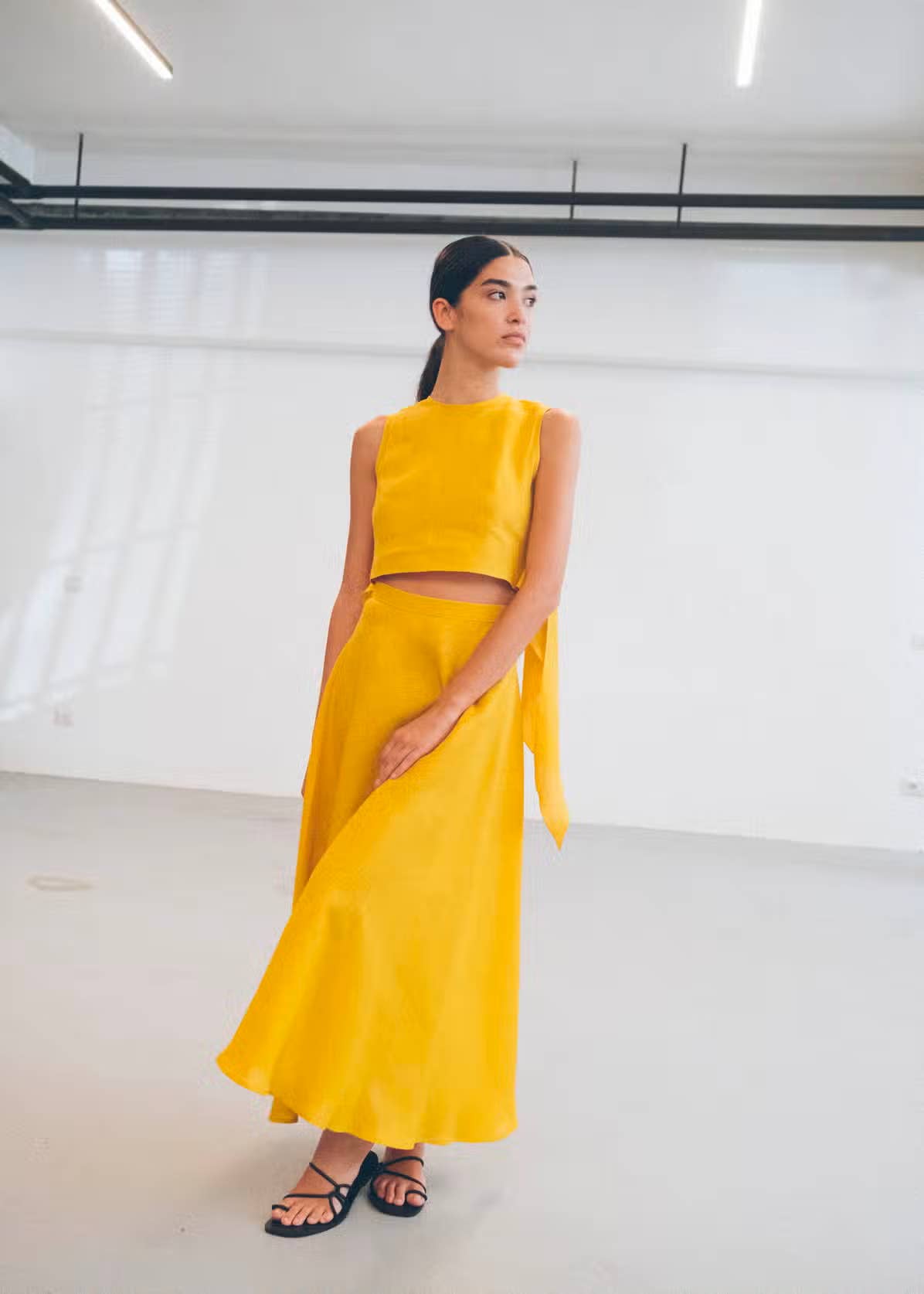 The spring/summer 2024 collection balances timeless tailoring with street elements to bring shoppers a trendy, sustainable wardrobe. We love this vibrant yellow two-piece that will stand out on your shelves.