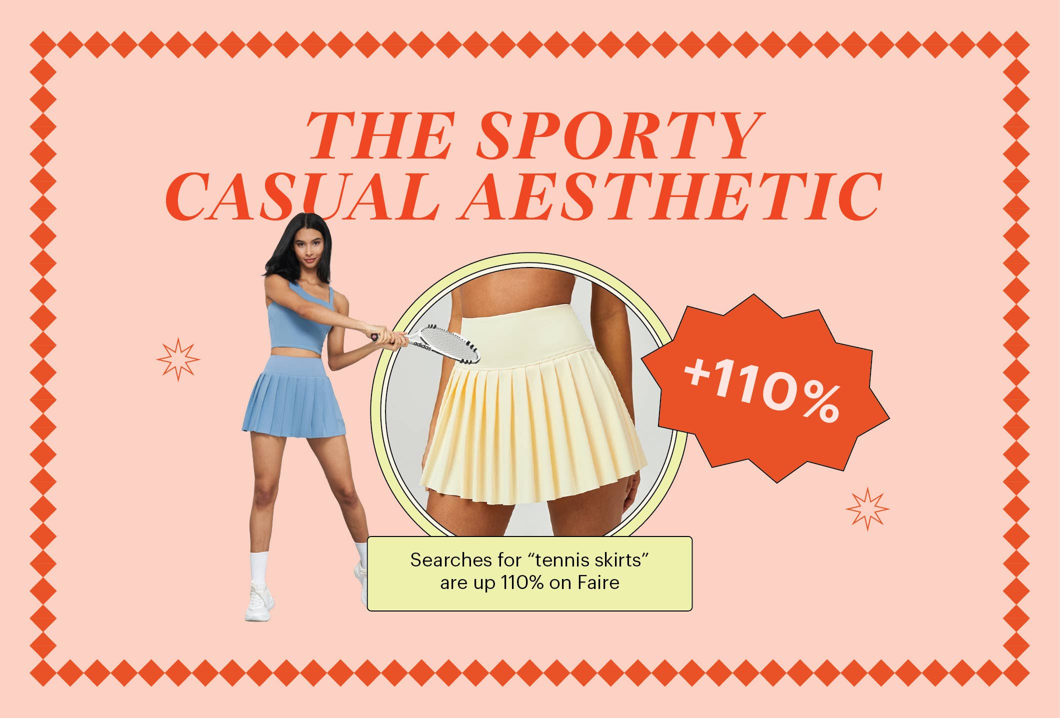 This lines up with what we’re seeing on Faire, as tennis-related searches are up 96%, and 110% for tennis skirts alone. Searches for polos have popped 164%, and linen searches are also at an all-time high (more than 9,100 retailers in April—a 53% year-over-year jump) in conjunction with the popular Linen Gap Commercial and the explosion of #linen on TikTok with 725.3 million views.
