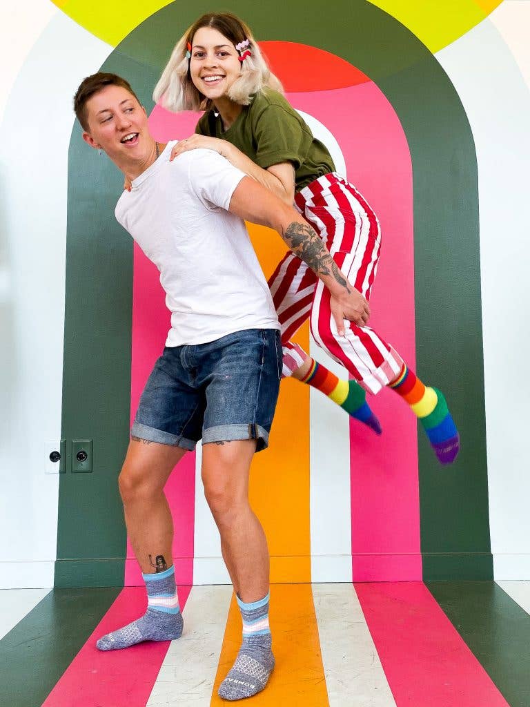 For Ash and Chess, that’s what Pride Month is about—reflecting on the support of the LGBTQ+ community and recognizing how far they’ve come. “It’s also a time to focus on how much further we have to go,” Chess said. The couple also emphasizes that it’s important for consumers and retailers to buy from LGBTQ+ business year-round, not just in the month of June. “It can feel like a show during Pride,” Chess said. “We’re here all year. And you can buy stuff other than Pride-themed products. It shows that queer people have more to offer than just queer stuff.”