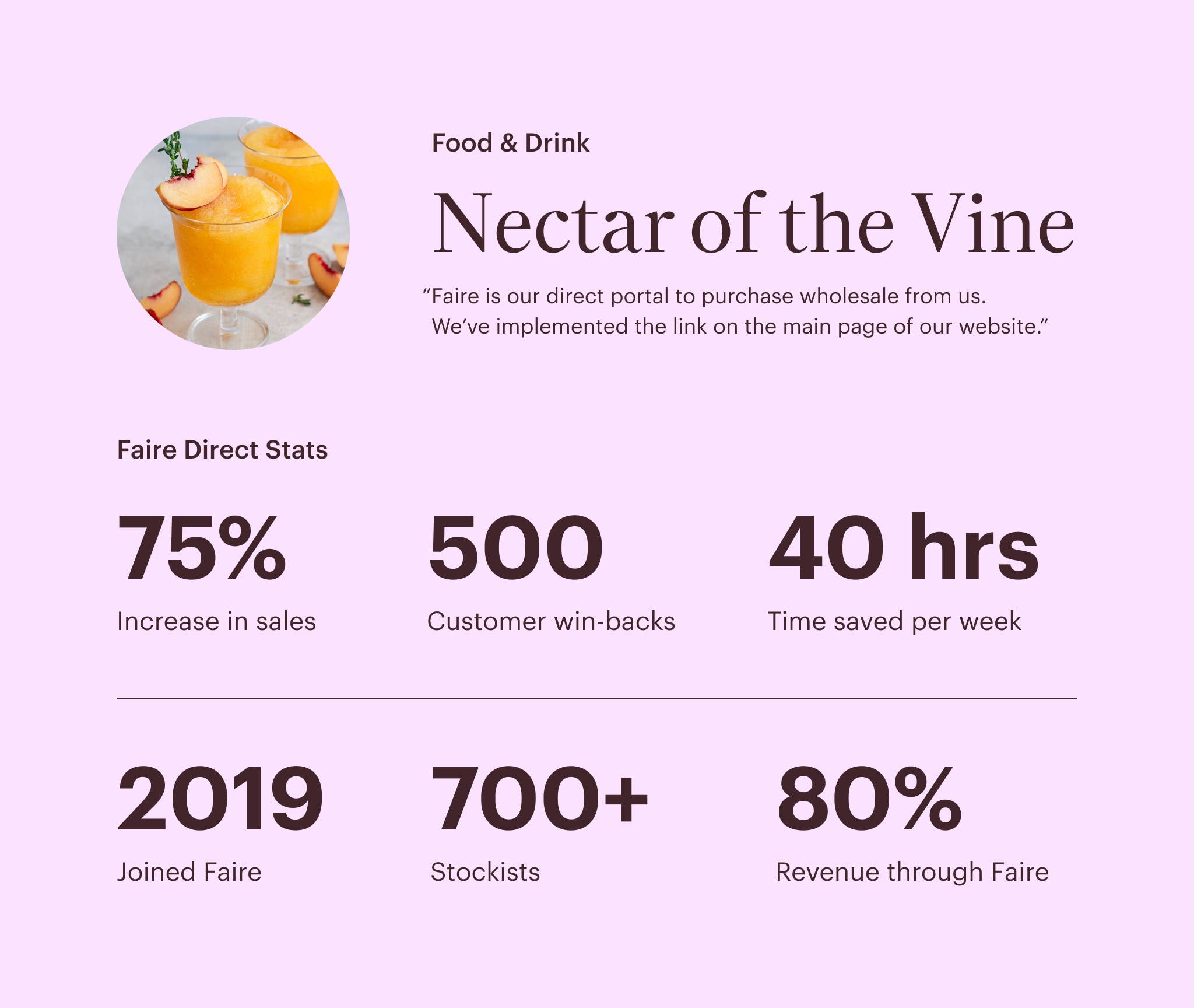 As a result of processing most of their orders through the Faire platform — which handles invoicing and payment collection on their behalf — the Nectar of the Vine team has been saving roughly 40 hours per week and $800 per month.
