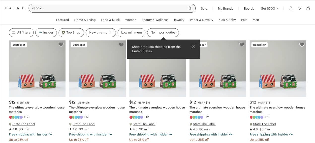 We’ve added a new “No Import Duties” filter that allows U.S. retailers to easily find over 10 million products on Faire that won’t incur duties. This filter will empower retailers to shop with more confidence and clarity when sourcing products without duties.