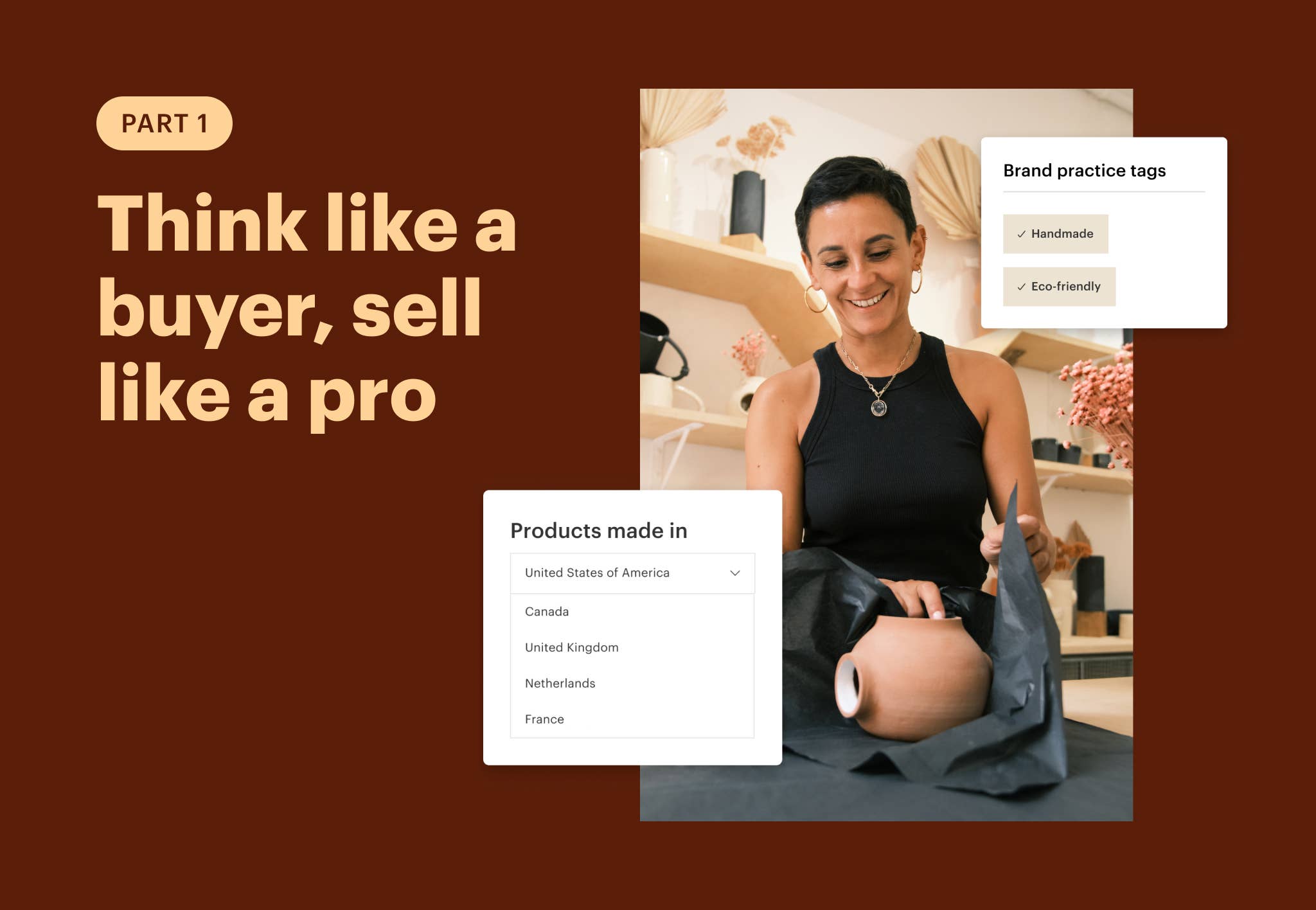 That means that adding the right details to your shop page and product listings, in addition to setting up strong foundations, is key to getting discovered and driving orders with the right buyers. That’s why accurate listings, not aspirational ones, give buyers the details they need to make fast, confident decisions.