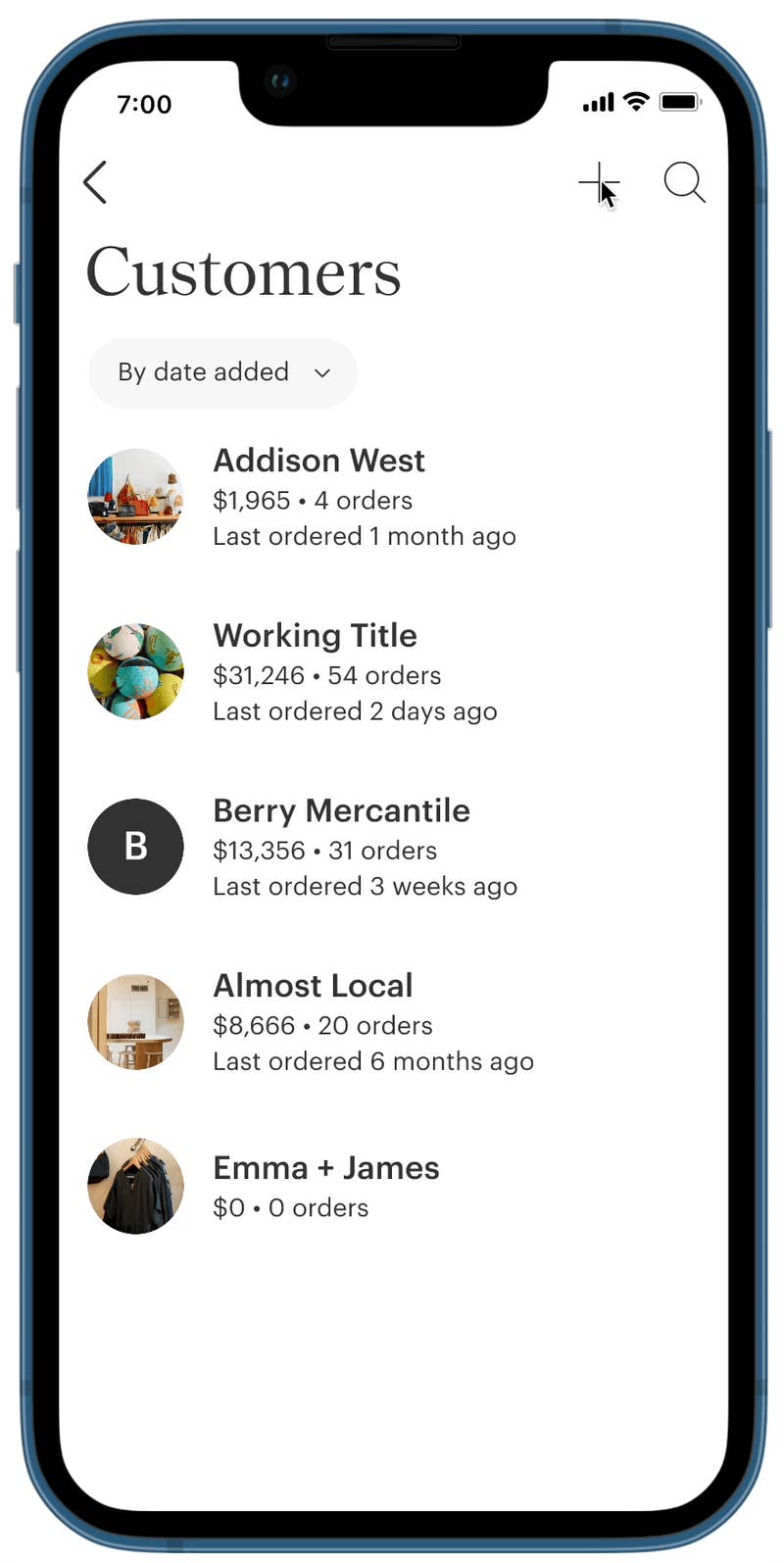 - Scan business cards to instantly capture retailer info and add them to your customer base—click Customers then + then click Or scan business card.