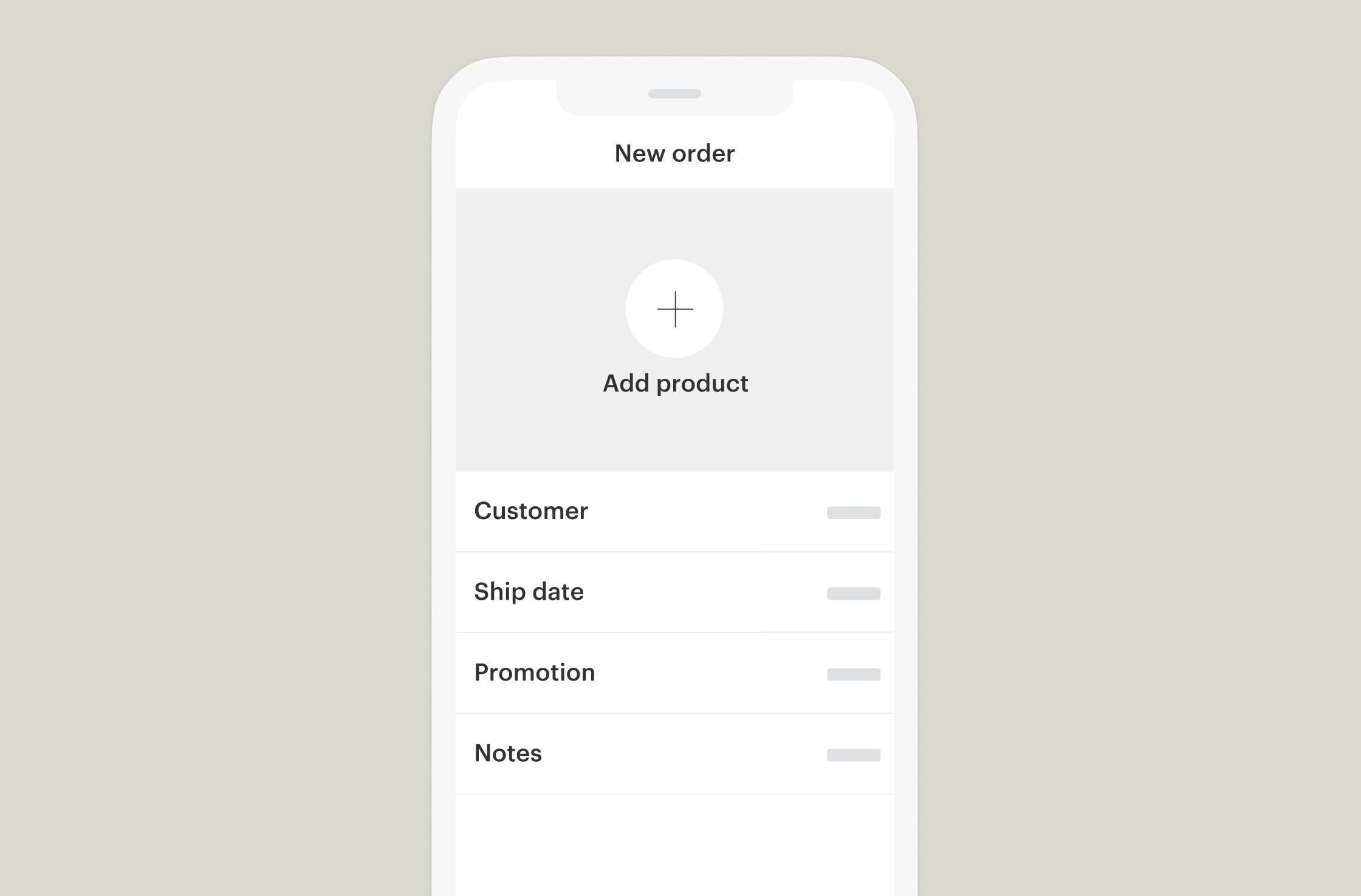 Start a new order instantly: Just tap Create order, add products and quantities, choose your customer, and include any notes, promotions, etc.