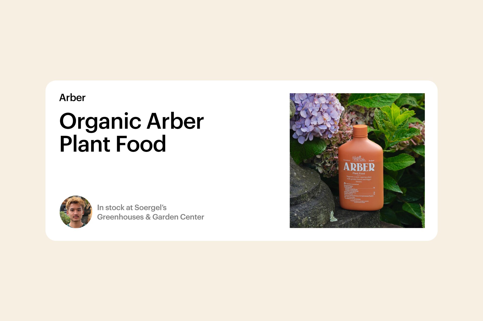 Arber was another one of the first brands Kevin discovered in his new role as buying manager. “We got a couple sample products in, starting with Arber, which was popping off at the time as this new organic fertilizer. So we tried it, and it did really well,” Kevin says. Arber Plant Food is made from recycled supermarket food waste, infused with rosemary oil, and designed to fuel plant growth with a nutritious, protein-infused booster that helps plants thrive whether they’re indoors or outdoors. “When customers don’t want something synthetic, we can recommend something that’s OMRI-listed and a lot gentler for plants. They’ve done the research, and the proof is in the pudding.”
