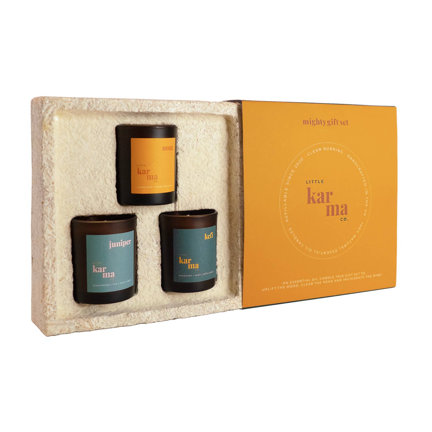 The future of fragrance is refillable, responsible, and rooted in wellness. Born during lockdown in 2020 by a candle-obsessed couple with a background in beauty and fragrance, Little Karma Co. was created with one goal: to handcraft candles that are better for people and the planet. While pregnant, our founder discovered the hidden toxins in conventional candles—paraffin wax and synthetic scents polluting the air we breathe. So we did things differently. Our luxury candles are handcrafted in the UK with 100% natural wax, pure essential oils, and clean-burning cotton and paper wicks. No nasties. Ever. Every bespoke scent is developed in-house, blending up to eight pure essential oils to support wellbeing and elevate any space. We’re proud to be one of the original pioneers of refillable candles in the UK, helping customers reduce waste while saving up to 50% on future purchases. Our commitment to sustainability runs deep—from home-compostable mycelium gift boxes to plantable seeded covers and sugarcane waste labels. Multi-award-winning and purpose-driven, we offer more than candles—we offer meaningful, refillable rituals your customers will love. Our wholesale T&Cs are available on our website.