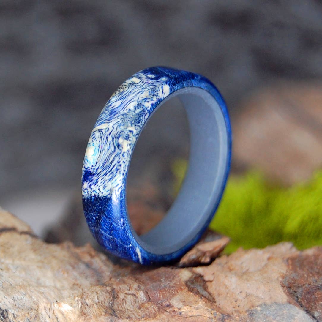 Anyone walking into a shop full of loud, over-sized machines would never guess the strong, naturally inspired wedding rings that are being made. Each ring is individually hand-made, careful attention to detail, and a finished product that is certain to feel as much a part of their love years down the road as it did on the day they married. Scott is a self-taught metal artist who spent a number of years designing knives while making rings as gifts for friends and family. When he married me, wife and business partner Minter, rings and romance won out. Minter & Richter Designs now runs out of a shop and studio in Boston, MA, where we also live with our two young sons and dog Ruby. Because the widespread use of titanium for jewelry has only taken off in the last two decades, some people consider titanium wedding bands rather non-traditional. But what could be more traditional than a ring that will maintain its shining strength and beauty generations beyond gold and silver? And starting a new tradition that doesn’t fuel civil wars (diamond trade) or destroy ecosystems (gold mining) sounds like a good place to start.