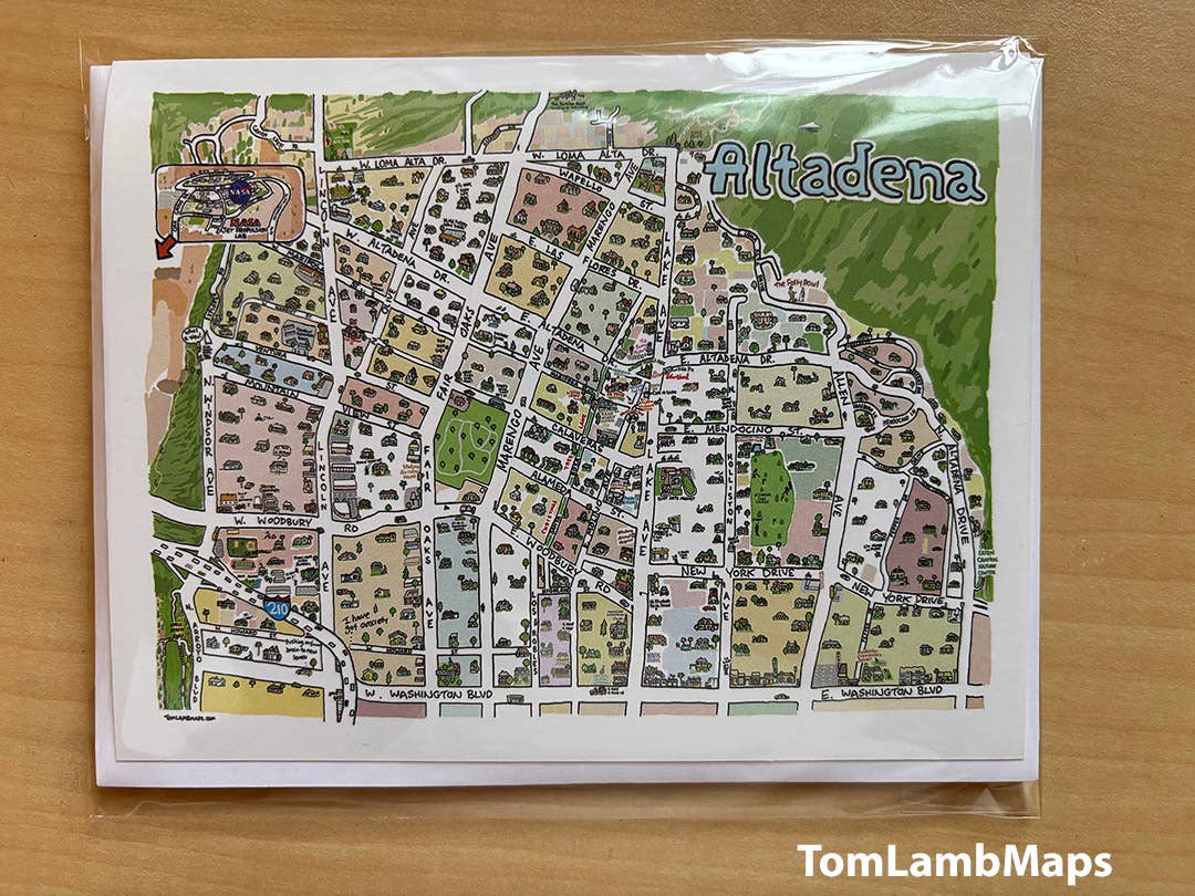 Tom Lamb is a designer/illustrator/cartographer based in Albuquerque, NM. Tom worked for over twenty years as an artist in the Hollywood movie biz but always had a passion for drawing on the side. He now creates his own designs full time and uses a team of local professional printers. His work is customizable too! Contact him for information about creating a map of your town!