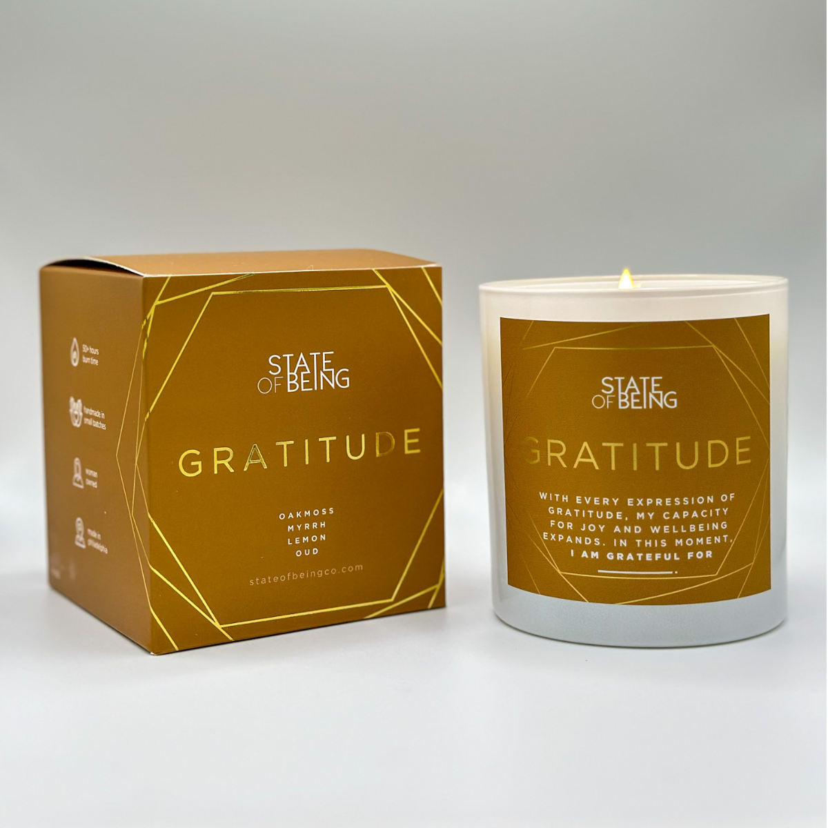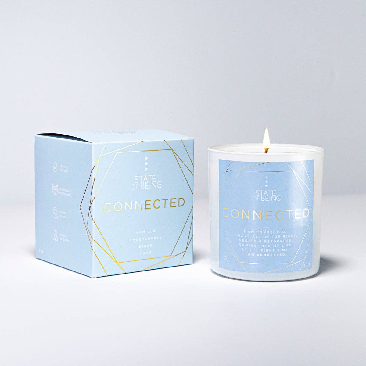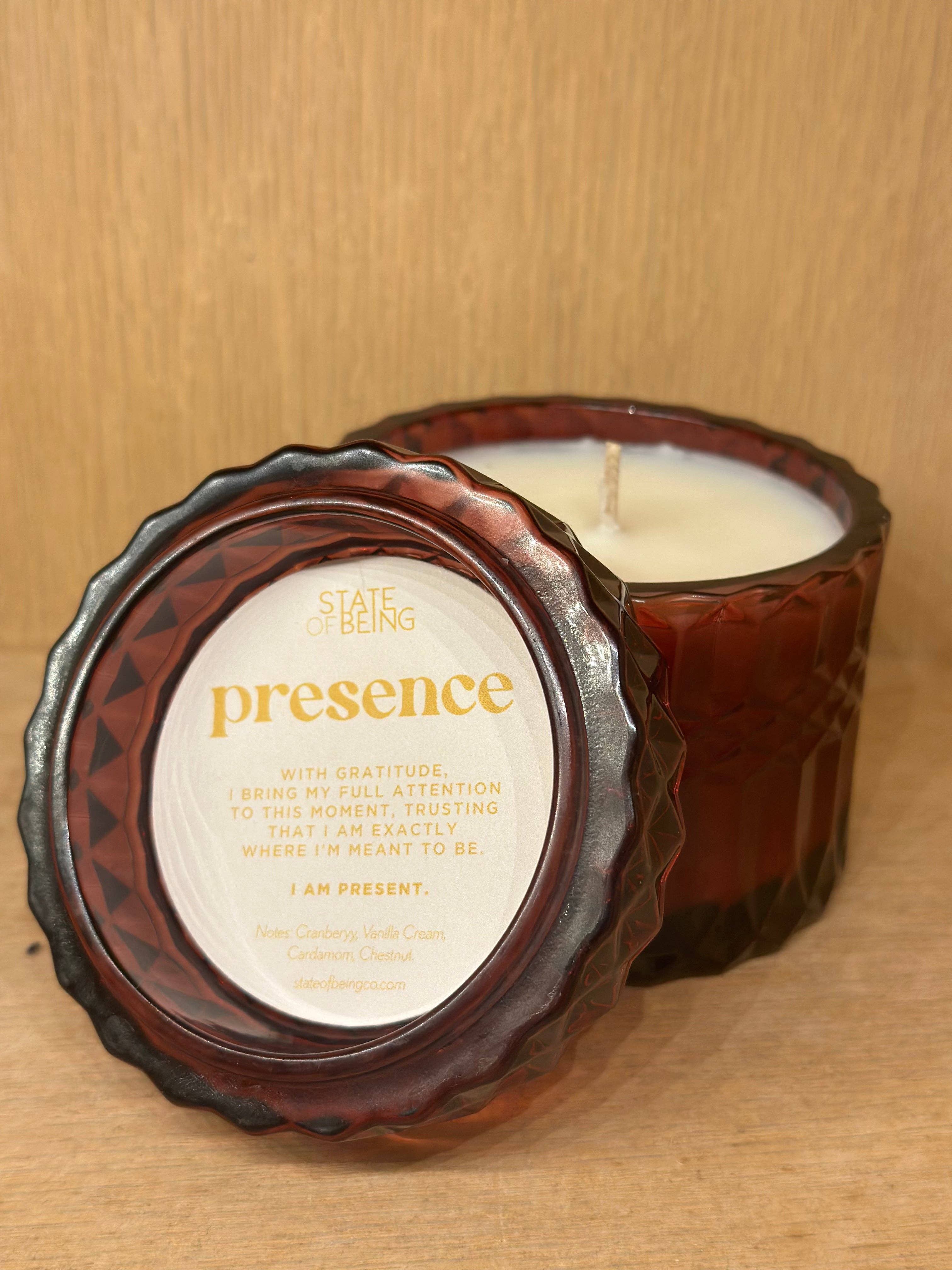 At State of Being Co., we harness the extraordinary power of scent recall to revolutionize your mindset. Through our intentionally scented candles and accompanying affirmations, we tap into the incredible ability of our brains to connect scents with memories. This unique fusion of mindfulness and self-care works synergistically to elevate your entire state of being. So, how does it work? Step 1: light your candle. Step 2: State the affirmation. Step 3: Live your life! -- The candle will do the work for you! Step 4: Elevate your state of being We use: - Safe, non-toxic, aromatherapeutic inspired scents - Powerful, researched backed, and spiritually led affirmations - 100% Premium soy coconut wax blend