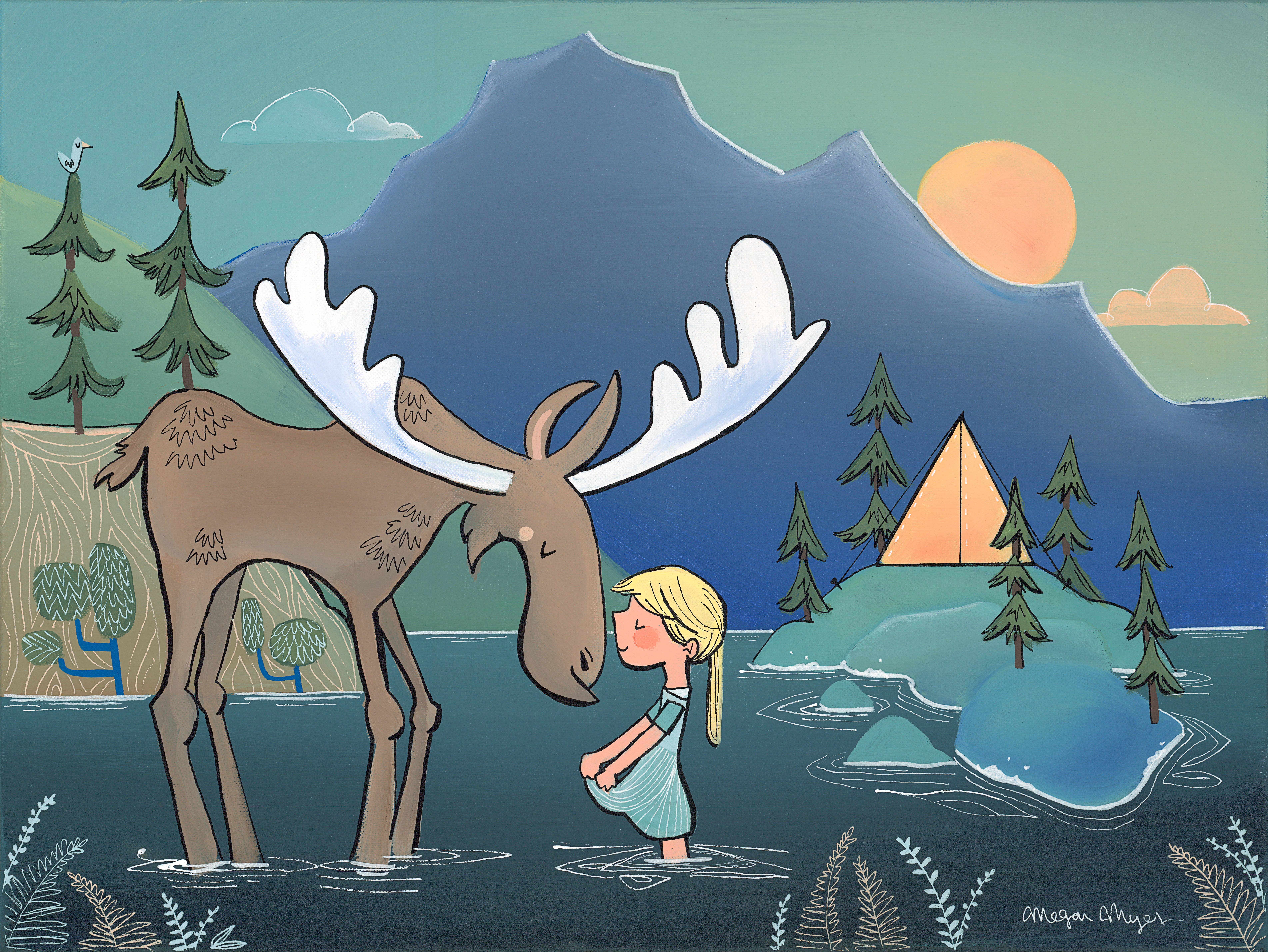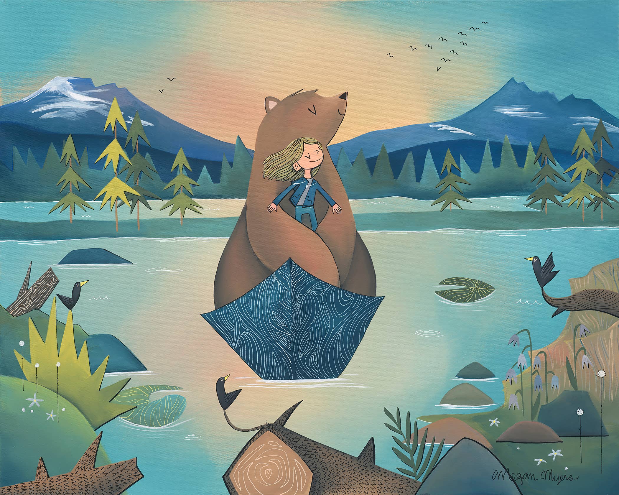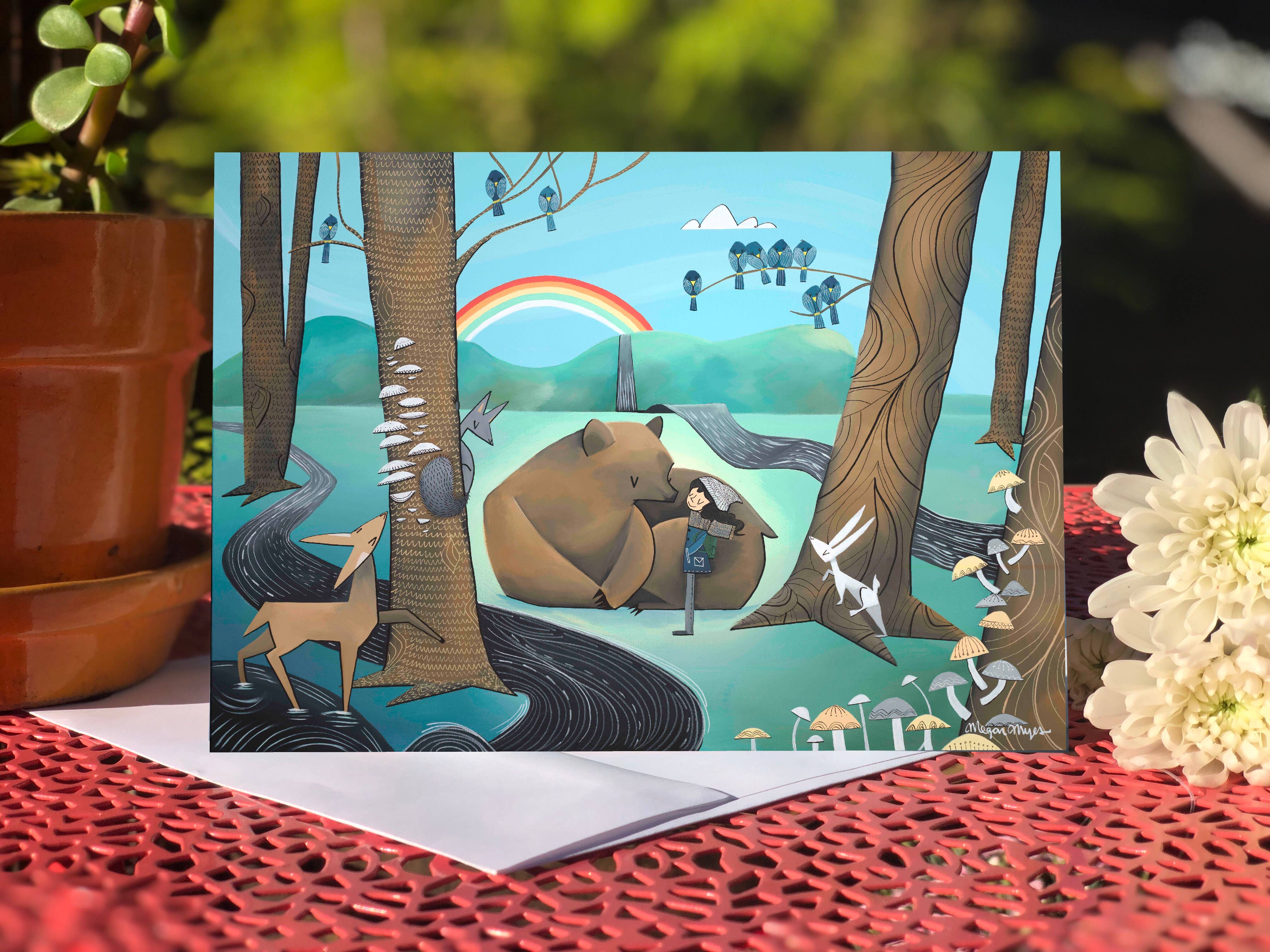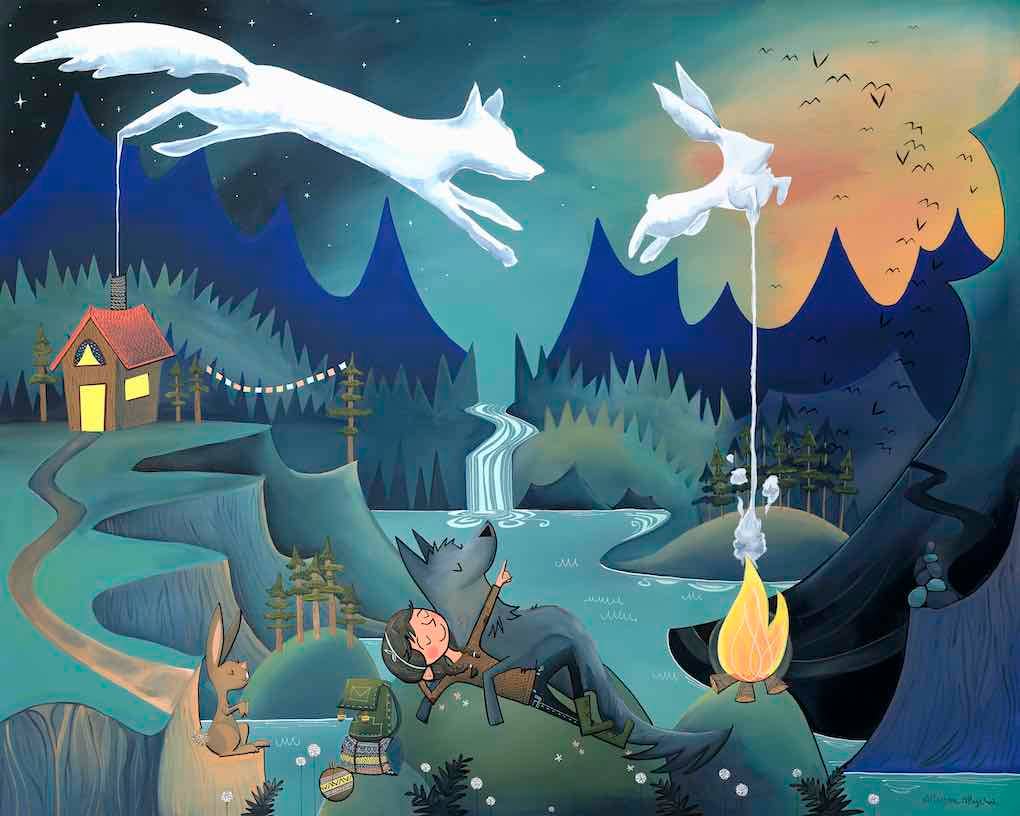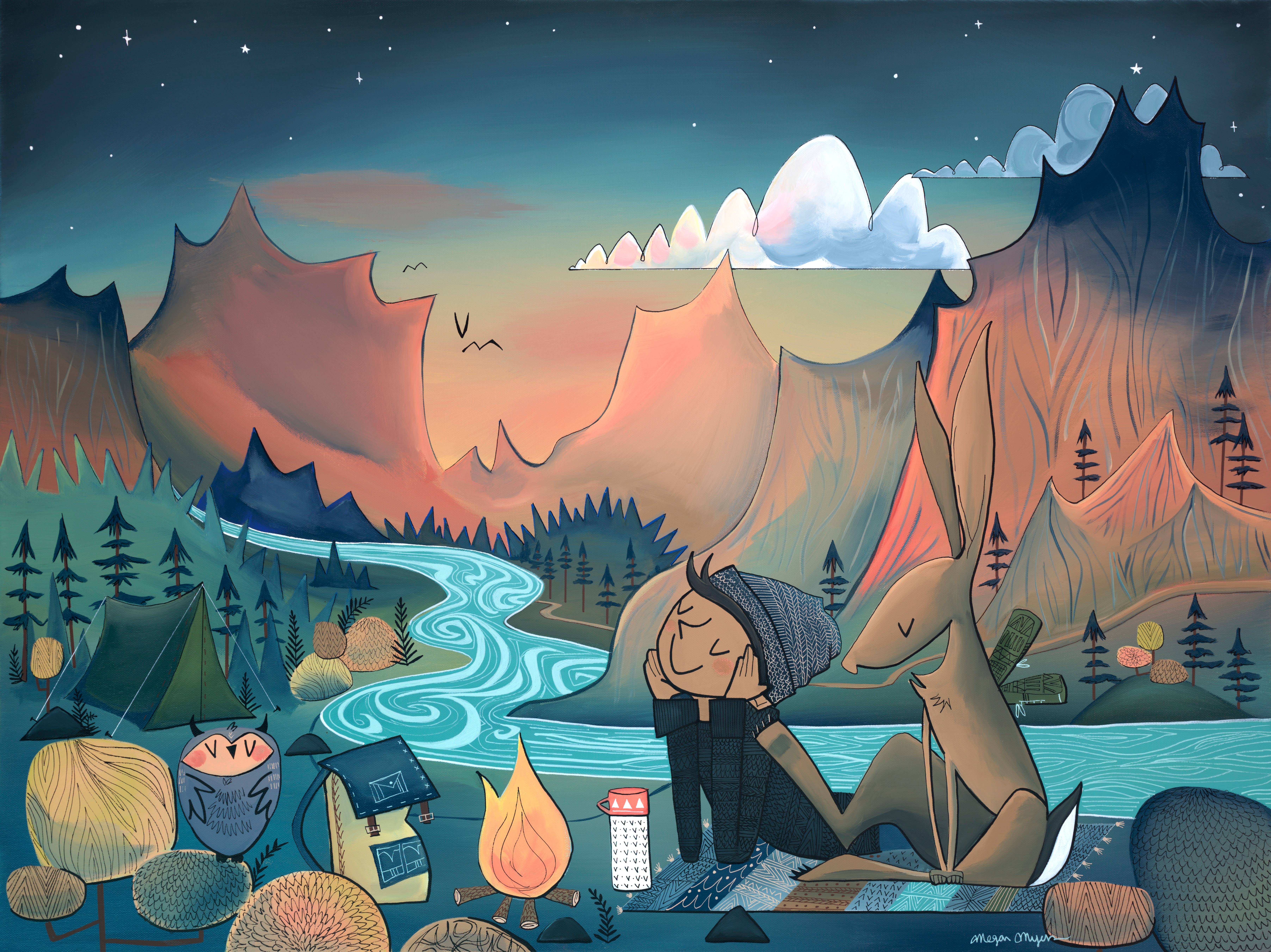 I am a painter and illustrator based in the PNW. My artwork is inspired by the outdoors and the connection we have to our natural surroundings and to each other. I paint my images with acrylic paint on canvas. From there, I reproduce them into a variety of keepsakes, such as greeting cards, postcards, giclée fine art prints, stickers, logs, and journals. I'm always developing new images and new products that showcase my artwork and connect us, so definitely check back for new items now and again! My work explores landscapes composed of whimsical mountains, forests, deserts, rock formations, oceans and rivers. The children and animals that typically appear as my subjects radiate with innocence and a sense of wonder brought forth by a connection to nature. The characters journey through the outdoors, exploring themes of companionship, protection, wilderness and the greatest adventure of all, love. Because of this sensibility, my work has found a special home with adventurers, explorers, kids and kids-at-heart within my local community and the outdoor industry. I hope that it can also find a home with you. Thank you for visiting!