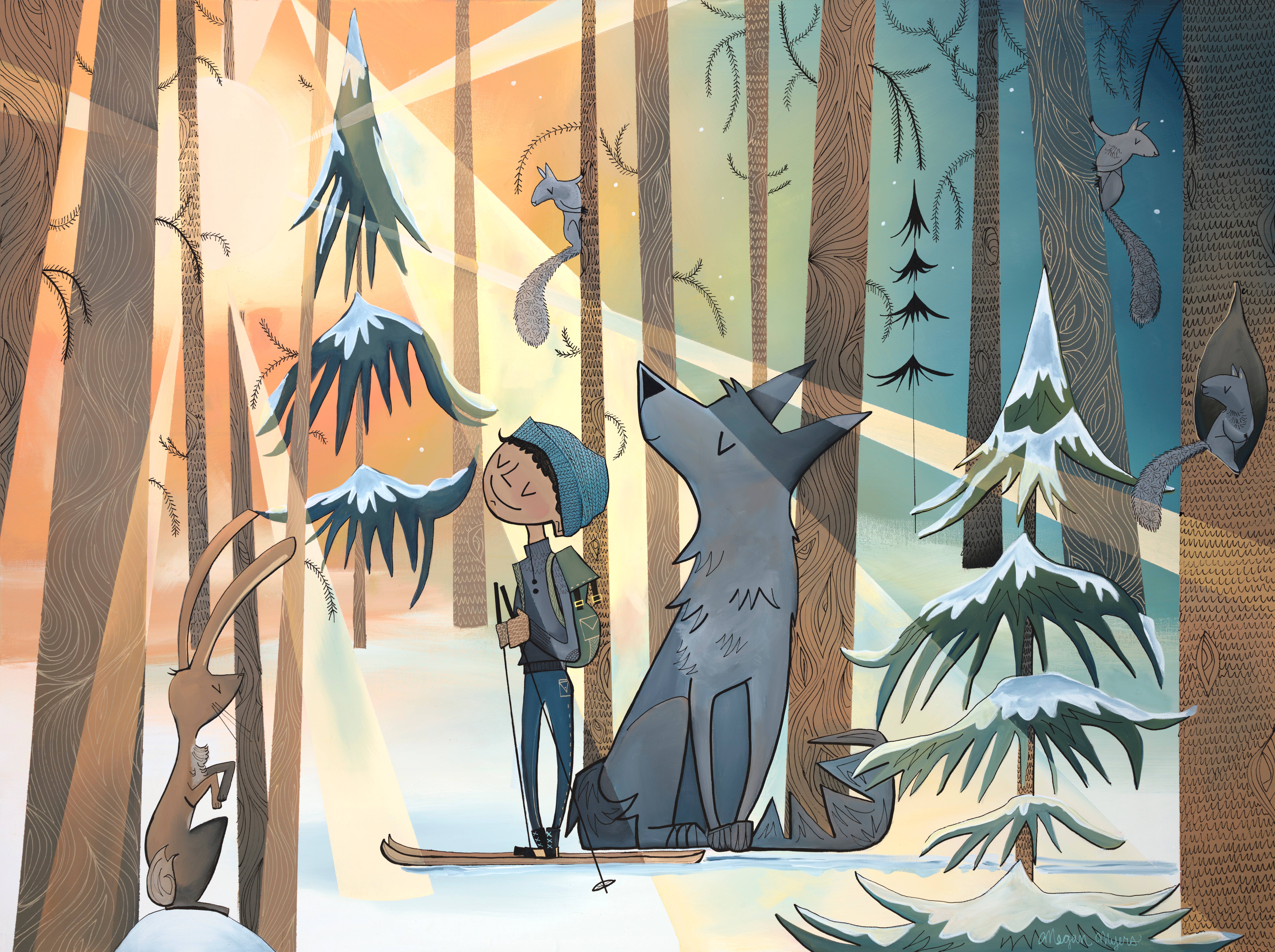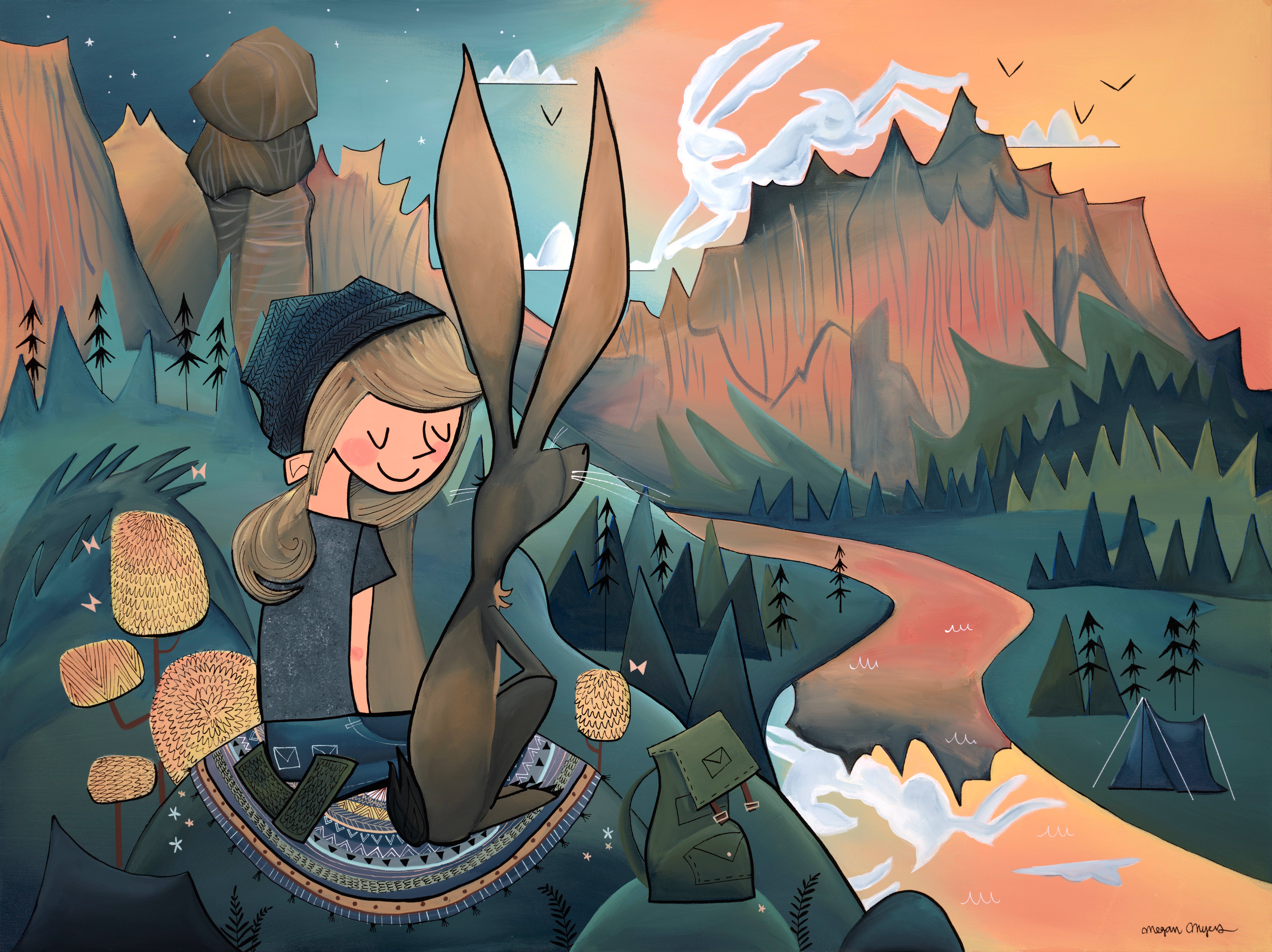I am a painter and illustrator based in the PNW. My artwork is inspired by the outdoors and the connection we have to our natural surroundings and to each other. I paint my images with acrylic paint on canvas. From there, I reproduce them into a variety of keepsakes, such as greeting cards, postcards, giclée fine art prints, stickers, logs, and journals. I'm always developing new images and new products that showcase my artwork and connect us, so definitely check back for new items now and again! My work explores landscapes composed of whimsical mountains, forests, deserts, rock formations, oceans and rivers. The children and animals that typically appear as my subjects radiate with innocence and a sense of wonder brought forth by a connection to nature. The characters journey through the outdoors, exploring themes of companionship, protection, wilderness and the greatest adventure of all, love. Because of this sensibility, my work has found a special home with adventurers, explorers, kids and kids-at-heart within my local community and the outdoor industry. I hope that it can also find a home with you. Thank you for visiting!
