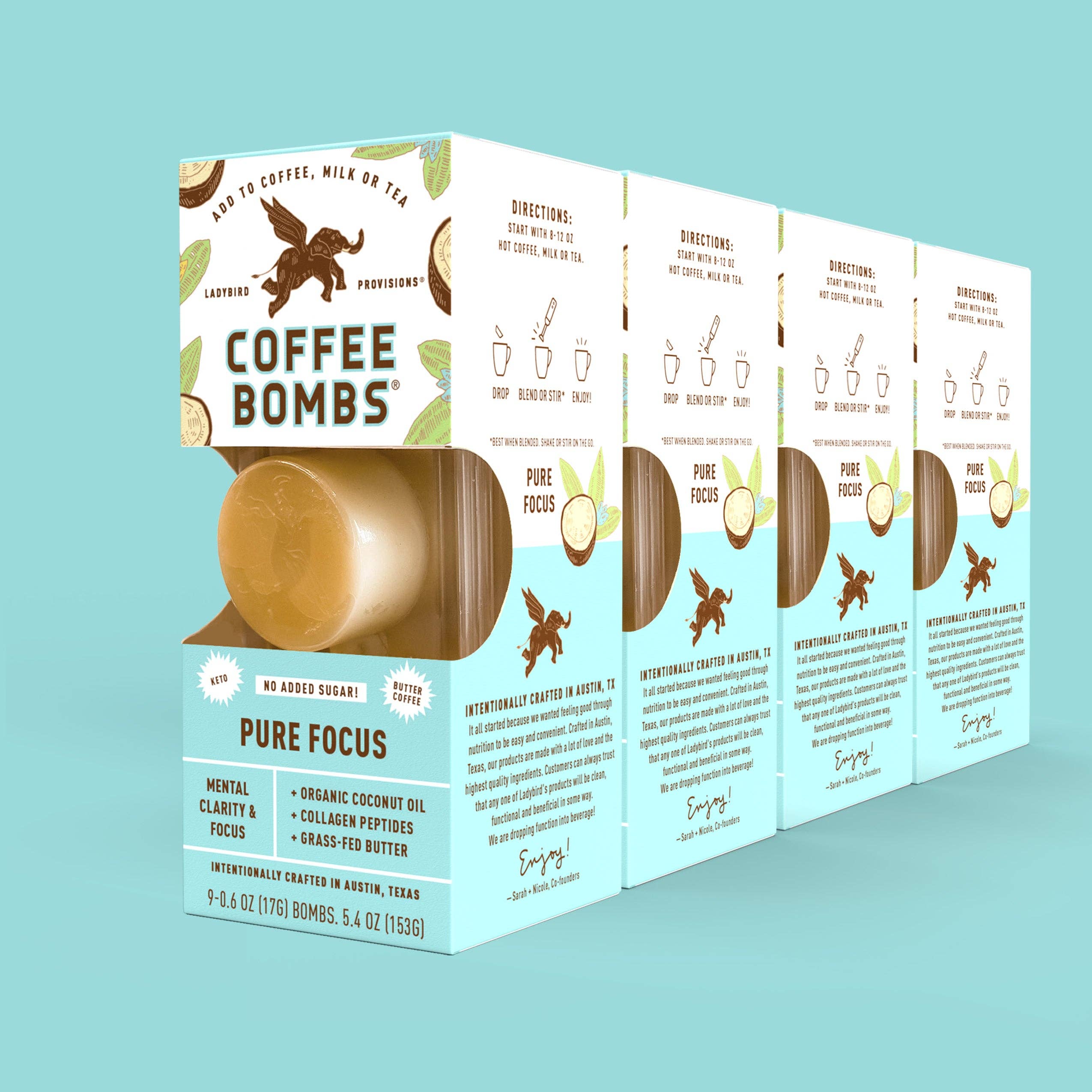 Ladybird’s mission is to make the healthy choice the easy choice. Our products are innovative and have seen immediate adoption from both conventional and diet-specific consumers. Produced in Austin, Texas, every item is made with a lot of love and the highest-quality ingredients. They’re gluten-free, Paleo/Keto-friendly, non-GMO, and contain no added sugar or preservatives. Customers can always trust that any ingredient in a Ladybird product is clean, intentional, and beneficial in some way. We’re dropping function into beverage!