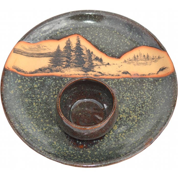 Pottery has been my passion for fifty years. Developing original designs and glaze combinations continually challenges me. Improving my line of dinnerware and art for the home is an ongoing process. I am known for my combination of glazes that create scenes in nature. I love experimenting with mixing glaze colors together to create depth and landscape feeling that can be interpreted by our customers. I live in the San Luis Valley, in southern Colorado where the view of the Sangre de Cristo Mountains inspire a desire to recreate outrageous sunsets and brilliant color combinations provided by nature each day. My work is done on the potter’s wheel, slab roller, or hand built, with the focus on making wares that are functional and used in the home every day. I feel very fortunate to have spent my life creating pottery for my customers to use in their home.