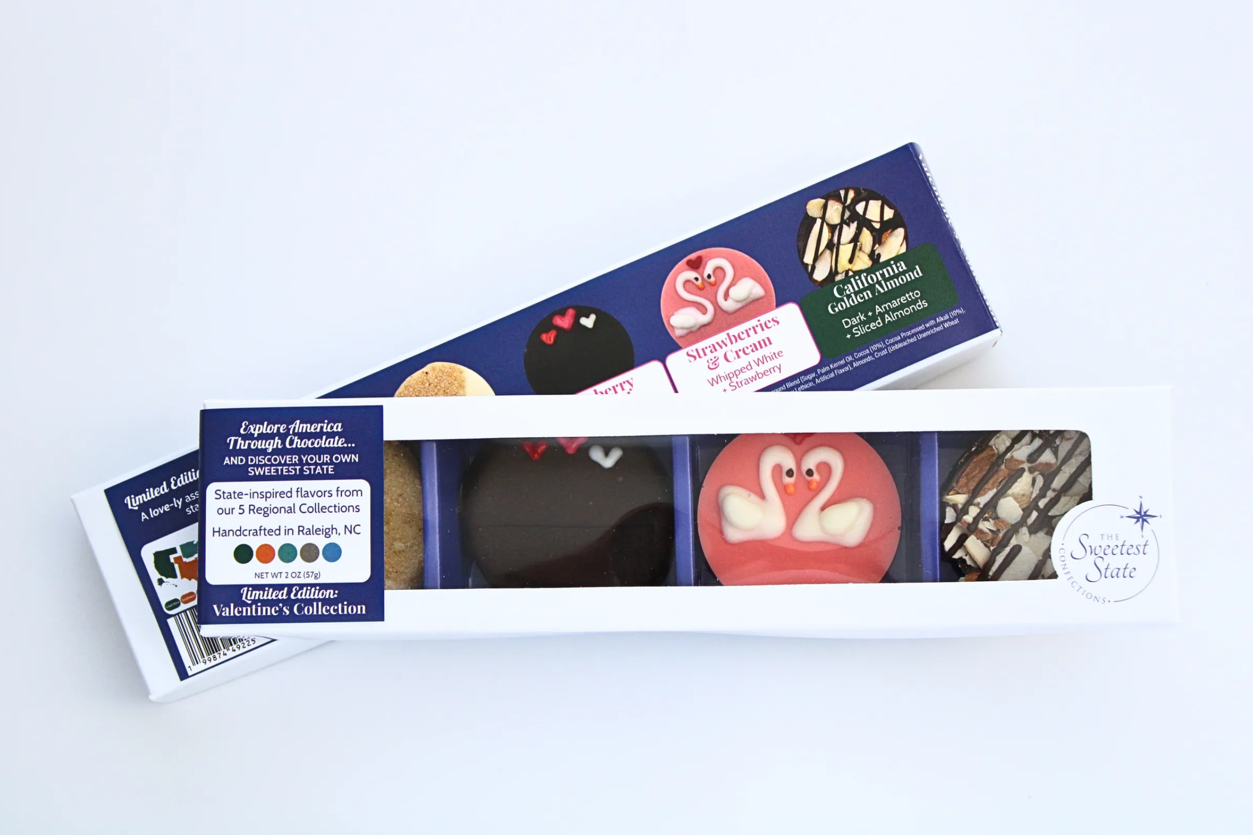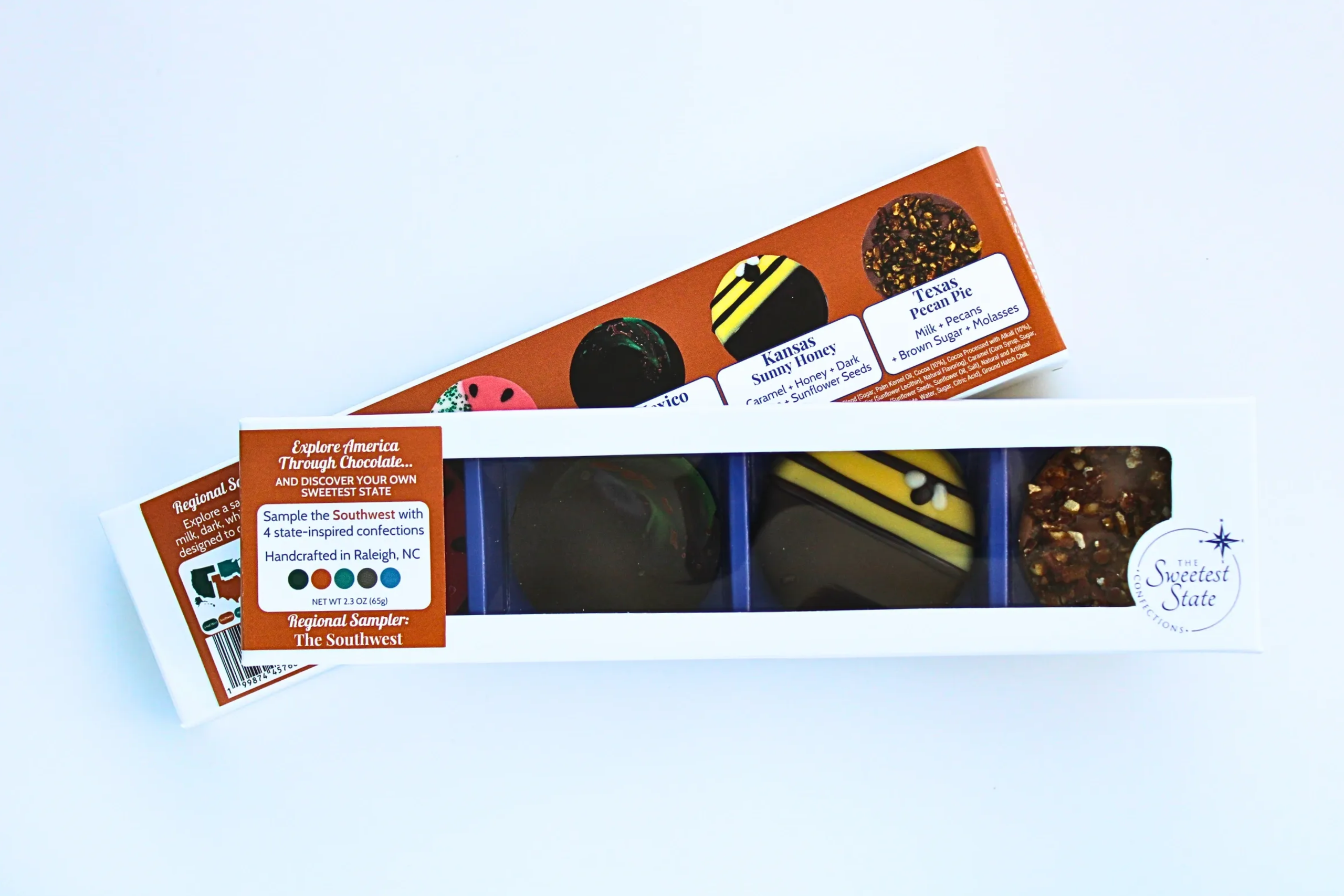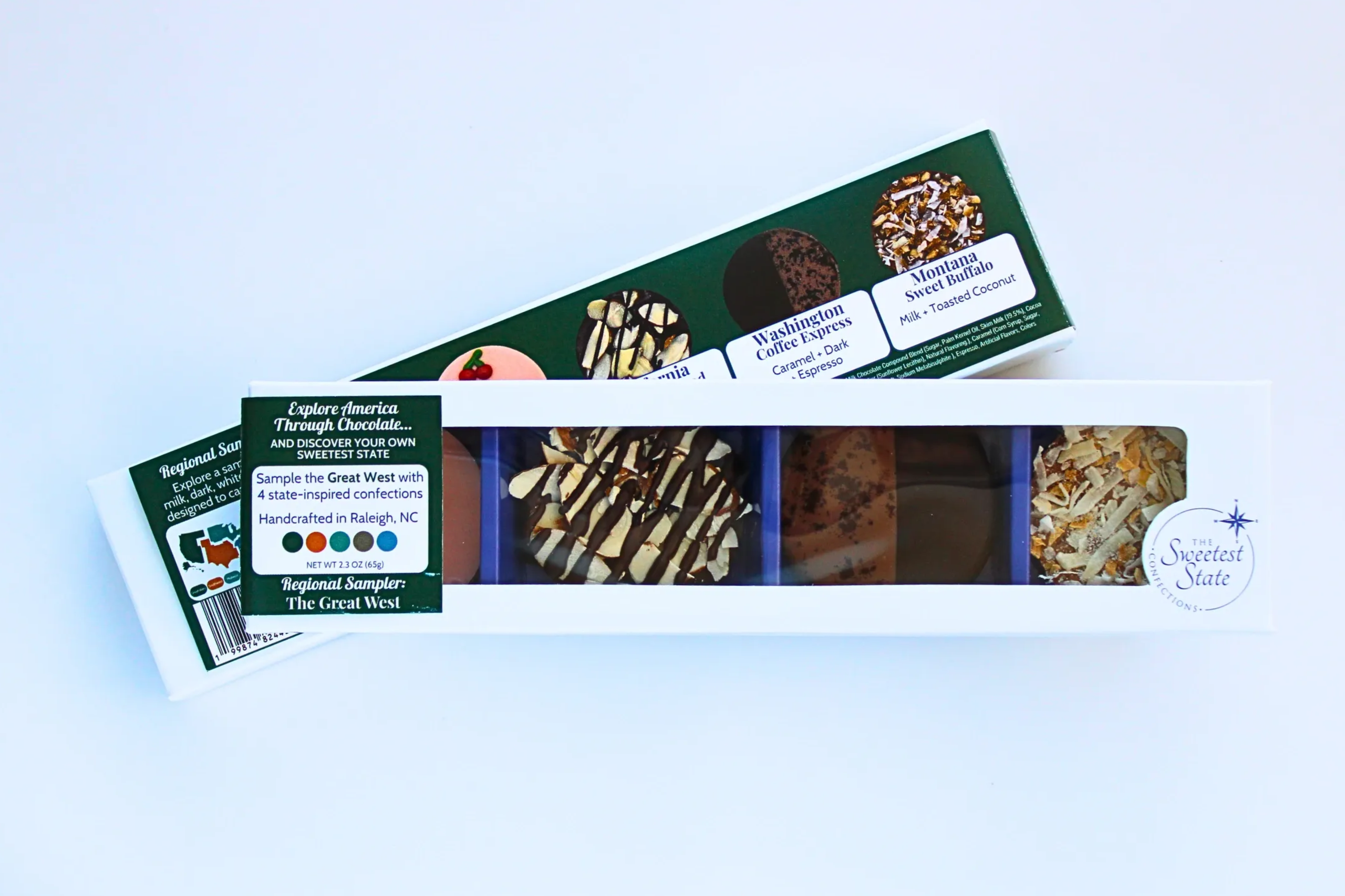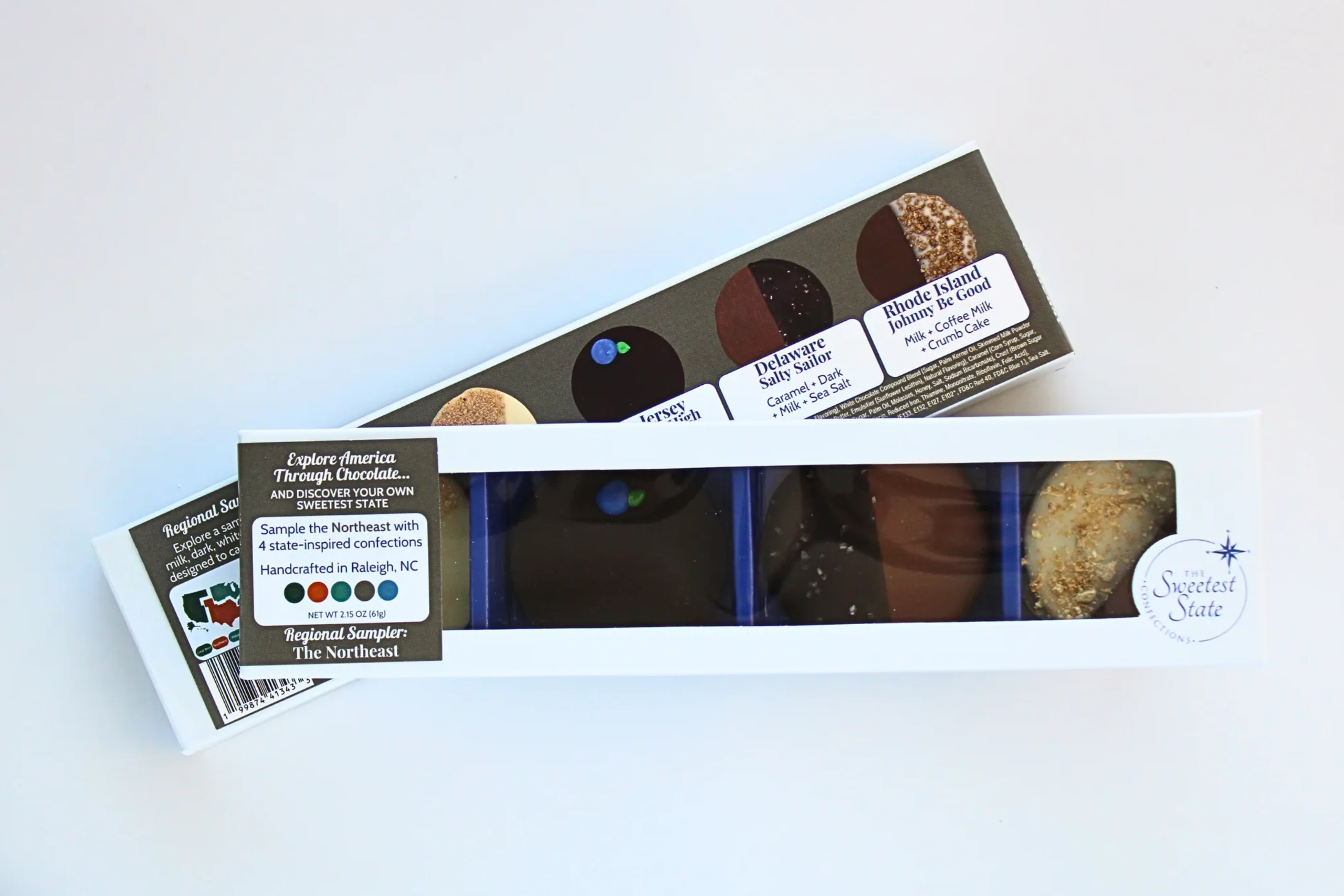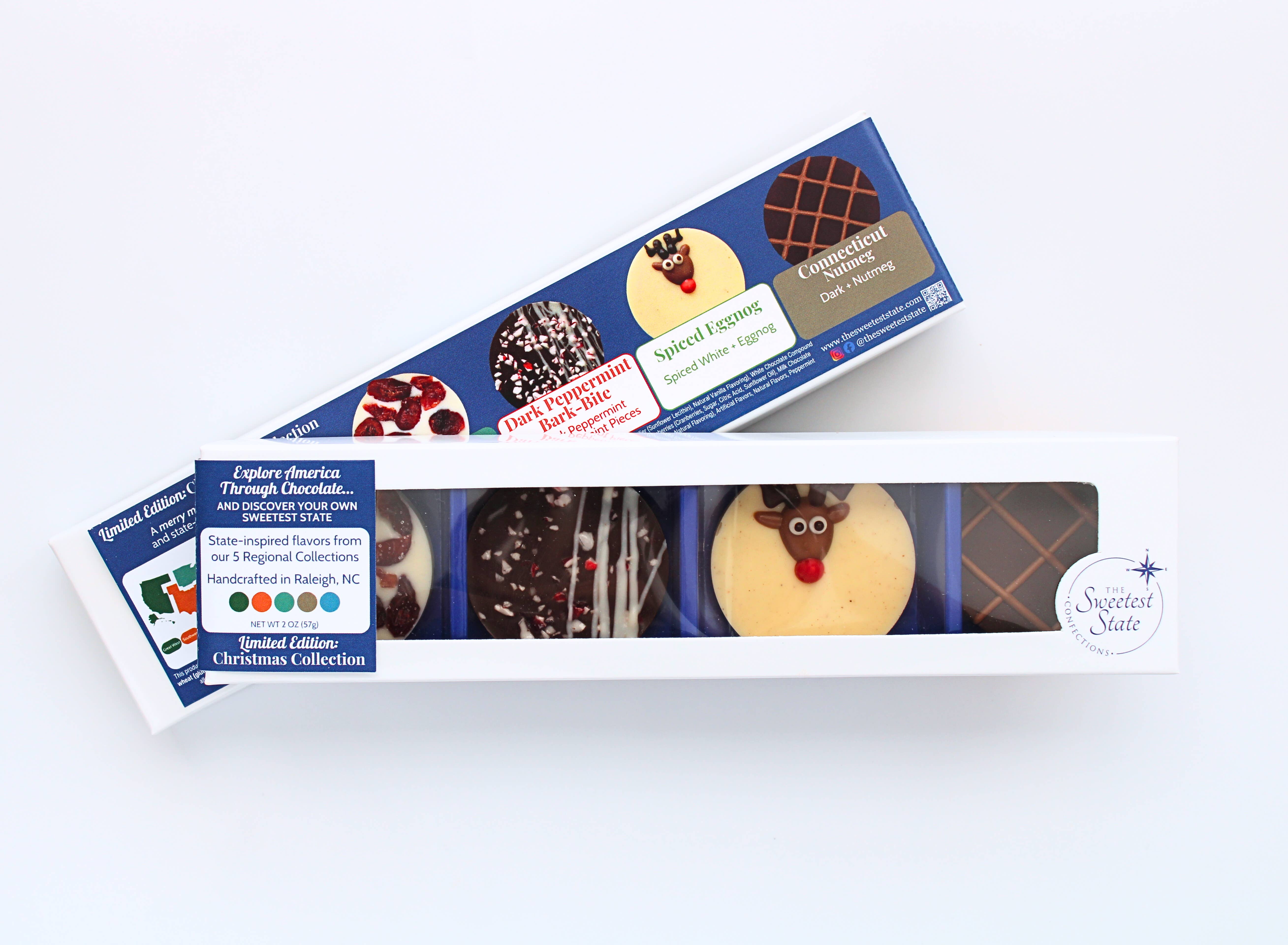 Explore America Through Chocolate... and Discover your own Sweetest State. Discover a story in every bite, one handcrafted confection at a time. Inspired by the rich history and signature flavors of each state, our mendiants offer a taste of tradition and a touch of home in each unique piece. Based in Raleigh, NC, these small-batch creations are lovingly crafted by just two women with a passion for connecting people through each sweet journey. Five regions. Fifty states. One unforgettable journey. Our 5 Regional Collections of the country are designed to capture memories with each taste, and are available in assorted collections including the Southeast, Northeast, Midwest, Southwest, and Great West. Your sweet journey embarks with our whimsical and classic edible works of art. Each handcrafted mendiant (men-dee-ahnt, French pronunciation: [mɑ̃-djɑ̃]) begins with a rich and silky base and is topped with fruits, nuts, or unique creations that highlight the flavors for which each state is known. Our Limited Edition creations offer continuously changing and season-inspired flavors. Each piece is thoughtfully crafted with our custom gourmet European chocolate compound blends and carefully selected ingredients, reflecting the spirit of a specific state. Our offerings are beautifully packaged and retail-ready, ideal for gift shops, corporate gifts, specialty boutiques, and curated food markets, each designed to bring a unique and engaging story to your shelves.