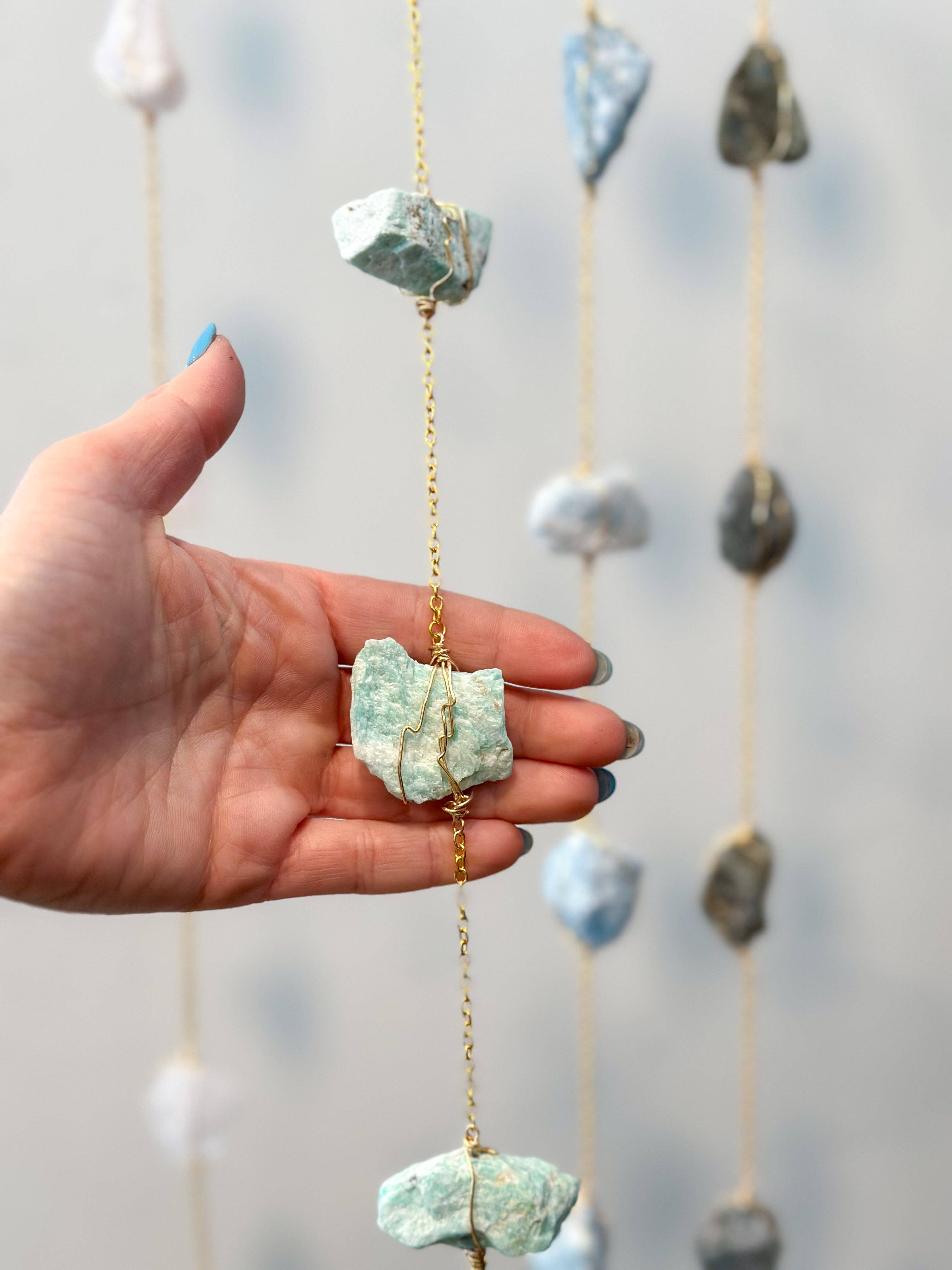Elise Marie DeSigns is a Maine-based jewelry and décor studio offering handcrafted pieces rooted in meaning, protection, and natural beauty. With over 15 years of experience, artist and owner Elise DeSalvo combines hand-wrapped wire techniques, stamped metals, and symbolic gemstones to create intentional adornments and home accents. From evil eye talismans to wire-wrapped rings, sun catchers, and crystal wall hangings, each piece is designed to support mindfulness, offer protection, and bring harmony to personal style or space. Our collections are ideal for metaphysical shops, crystal boutiques, wellness centers, plant shops, and florists seeking artisanal, small-batch goods with a deeper purpose. Whether worn on the body or hung in the home, our designs serve as everyday reminders of clarity, intention, and energy alignment. All items are handmade in Maine using natural stones, symbolic motifs, and hypoallergenic materials. We’re proud to be a woman-owned, slow-made brand committed to thoughtful design and soul-centered storytelling.