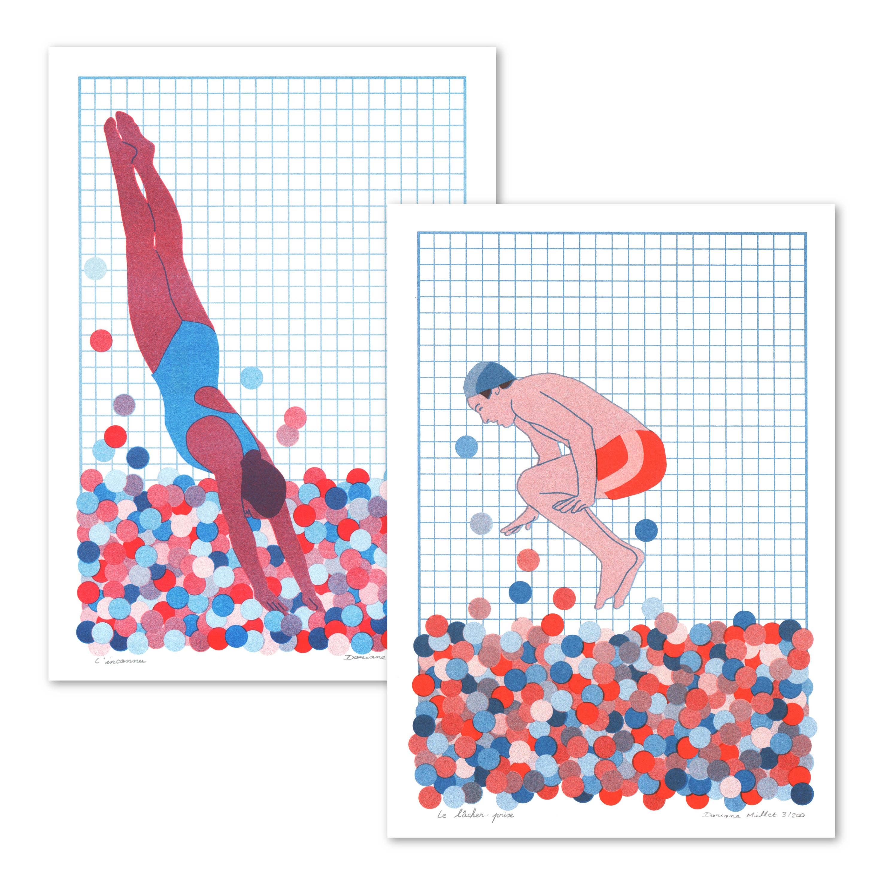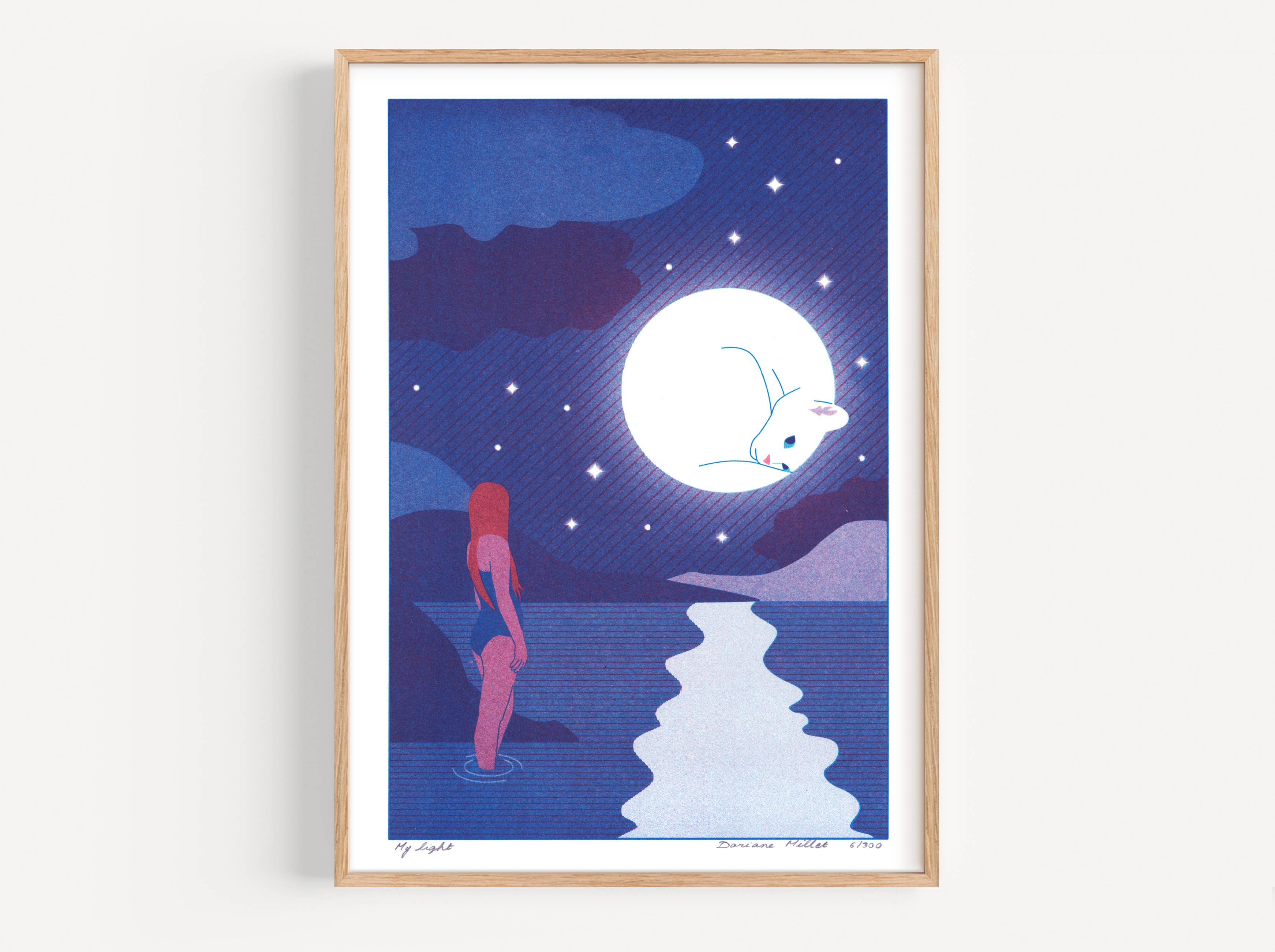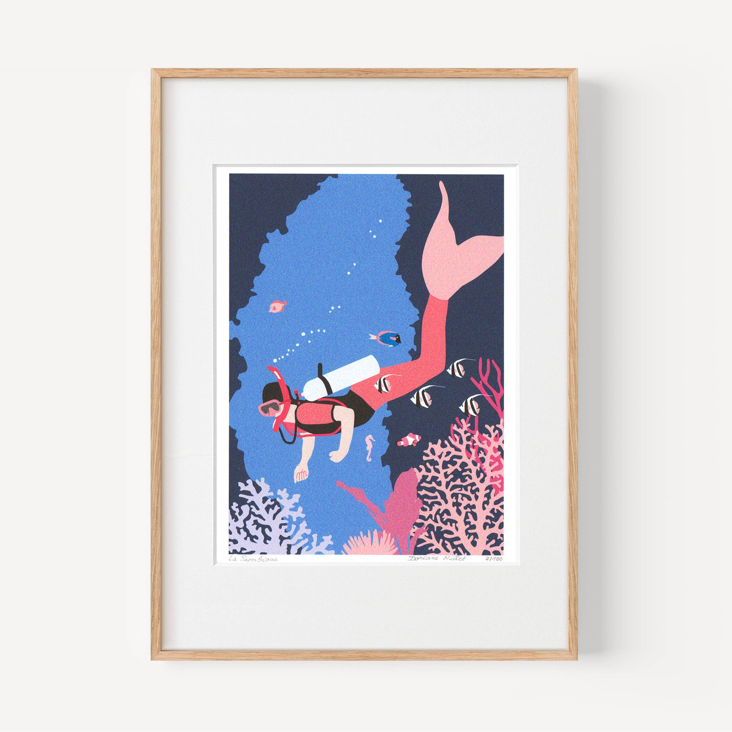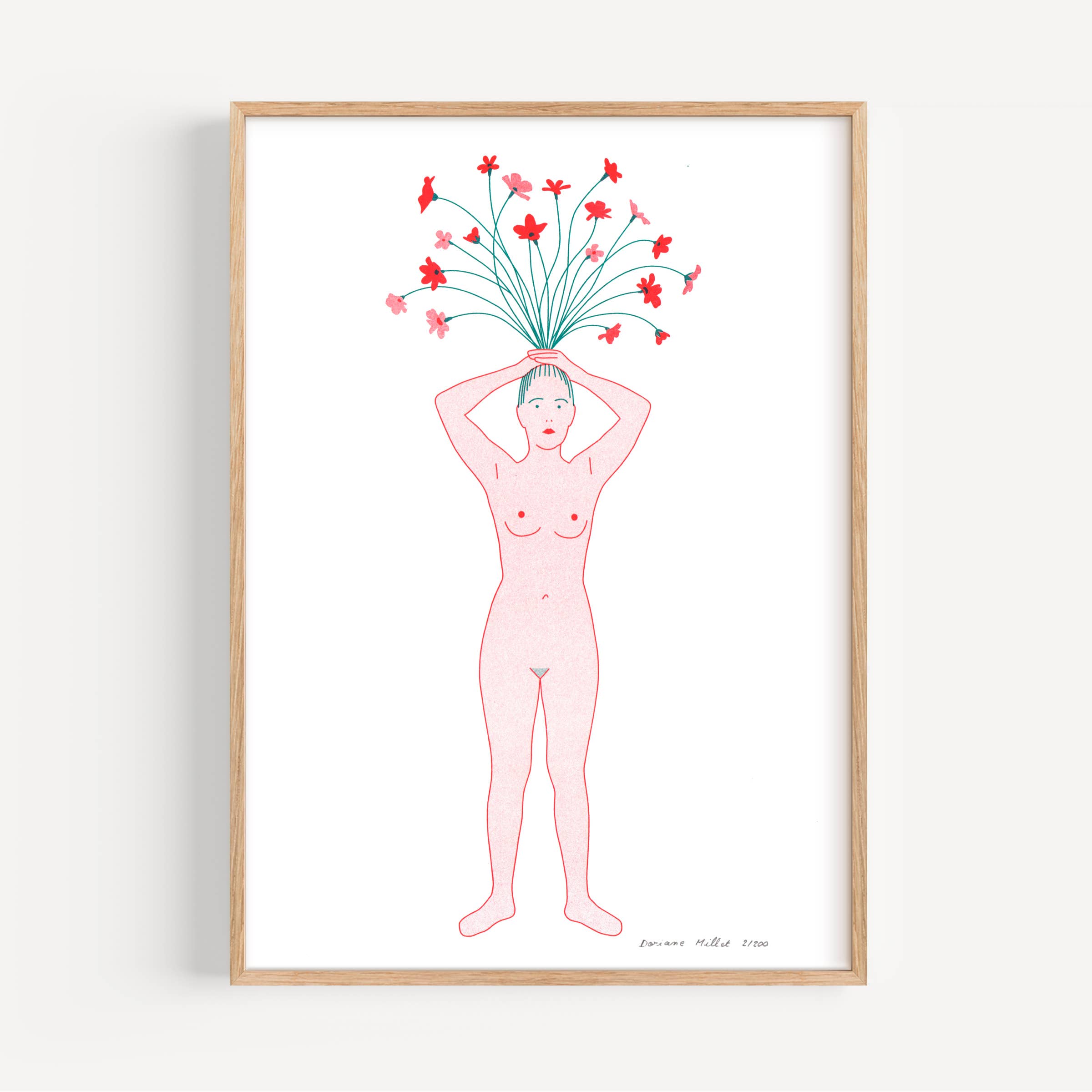 My name is Doriane Millet, I am a visual artist, I live and work in Marseille. After studying textile design in Paris, and illustration at the Académie Royale des Beaux-Arts in Brussels, I started editing limited series prints from my digital drawings. My artistic universe revolves around the themes of femininity, fairy tales, everyday life and disenchantment, and is often autofiction. Symbolic, figurative and emotional, my work cuts across different areas such as contemporary art, illustration and interior design. Passionate about narrative images, I like the idea that you can hang an image at home that relates to your personal story. May my drawings lead to reflection, to introspection. On my shop, you can buy original art prints at affordable prices. I entrust the printing of my images to French laboratories specialized in art editing.The printing techniques and art paper are carefully chosen for a high quality rendering. Numbered and signed, each copy has the value of an original work of art published in a limited series and not a reproduction. The risography brings an artisanal, random touch that transforms the prints into tactile pieces. I also use Fine Art printing for the liveliness of pigment inks, and the preciousness that this technique gives to my images, which you can keep intact