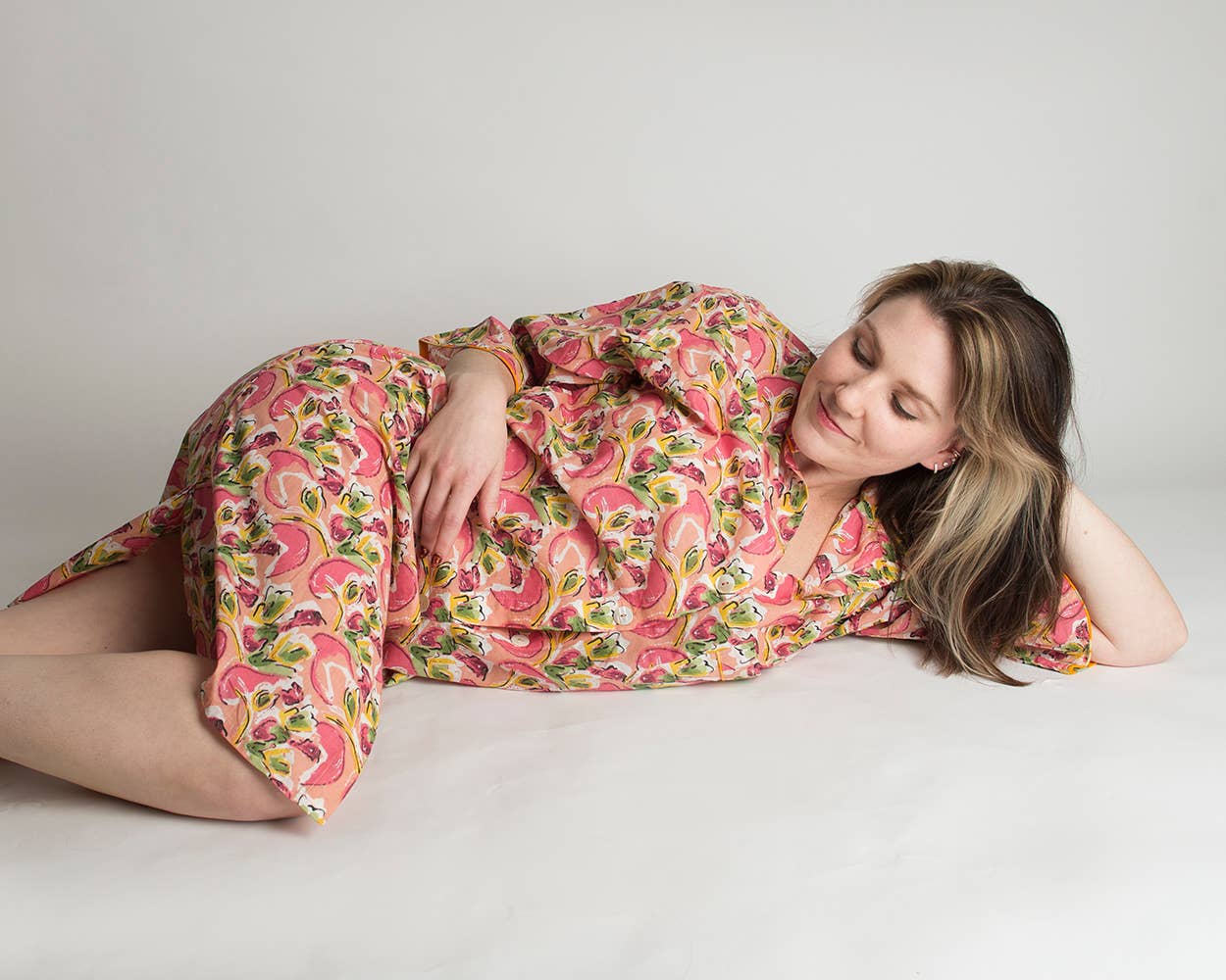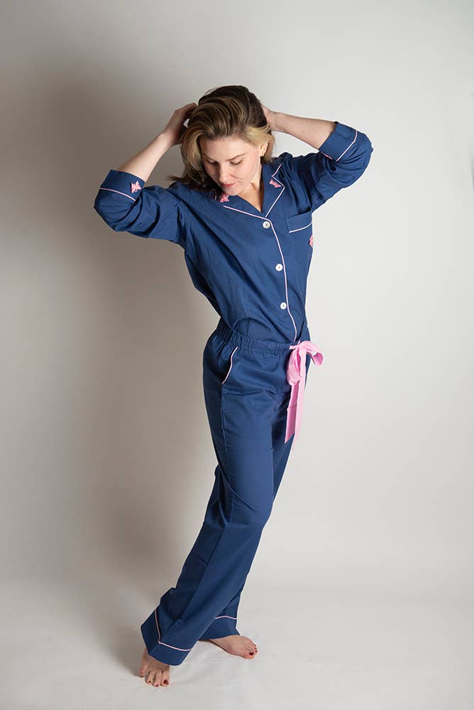 Our pajamas and loungewear are crafted in small batches from 100% breathable cotton, with beautiful details such as mother of pearl buttons and French seams. Our products are made exclusively from pre-existing materials to eliminate dye pollution, and produced in close partnership with small family-run factories in India. Every detail reflects our values: fair labor practices, sustainability, and zero plastic - right down to the hand-knotted cotton label threads. Lounge, sleep, stretch, live! Our loungewear is made to move with you and keep you comfortable. With 100 percent pure cotton fabrics and a commitment to sustainability, you can feel good while feeling good about what you wear.