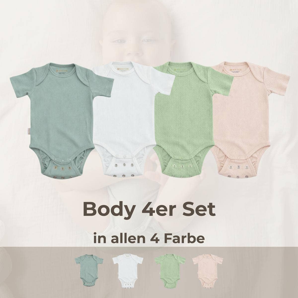 MAYAN - growing & functional baby clothing that makes everyday life easier for parents. The name MAYAN is derived from the names of our children Maya, Jana & Anna and embodies the unconditional love that parents feel for their children. The logo, a hand-holding couple, is indeed us, the two founders – Anastasia & Wadim. It symbolizes love, unity, security, and trust. The values we stand for together as a family. Our vision is to give parents around the world precious time and unforgettable moments with their children. With a lot of love, we have developed our fashion to make the often hectic mom's everyday life easier. So that less stress and more closeness, laughter, and cuddling become possible. “We are the reason why the world is a little more beautiful & better today than yesterday” is more than just a phrase for us, it is our heartfelt attitude. Thanks to our growth function, our clothing accompanies families through many valuable months. This way, together with you, we not only avoid constant repurchasing but also help reduce overproduction and resource waste. Throw away less, love more – for a better future.