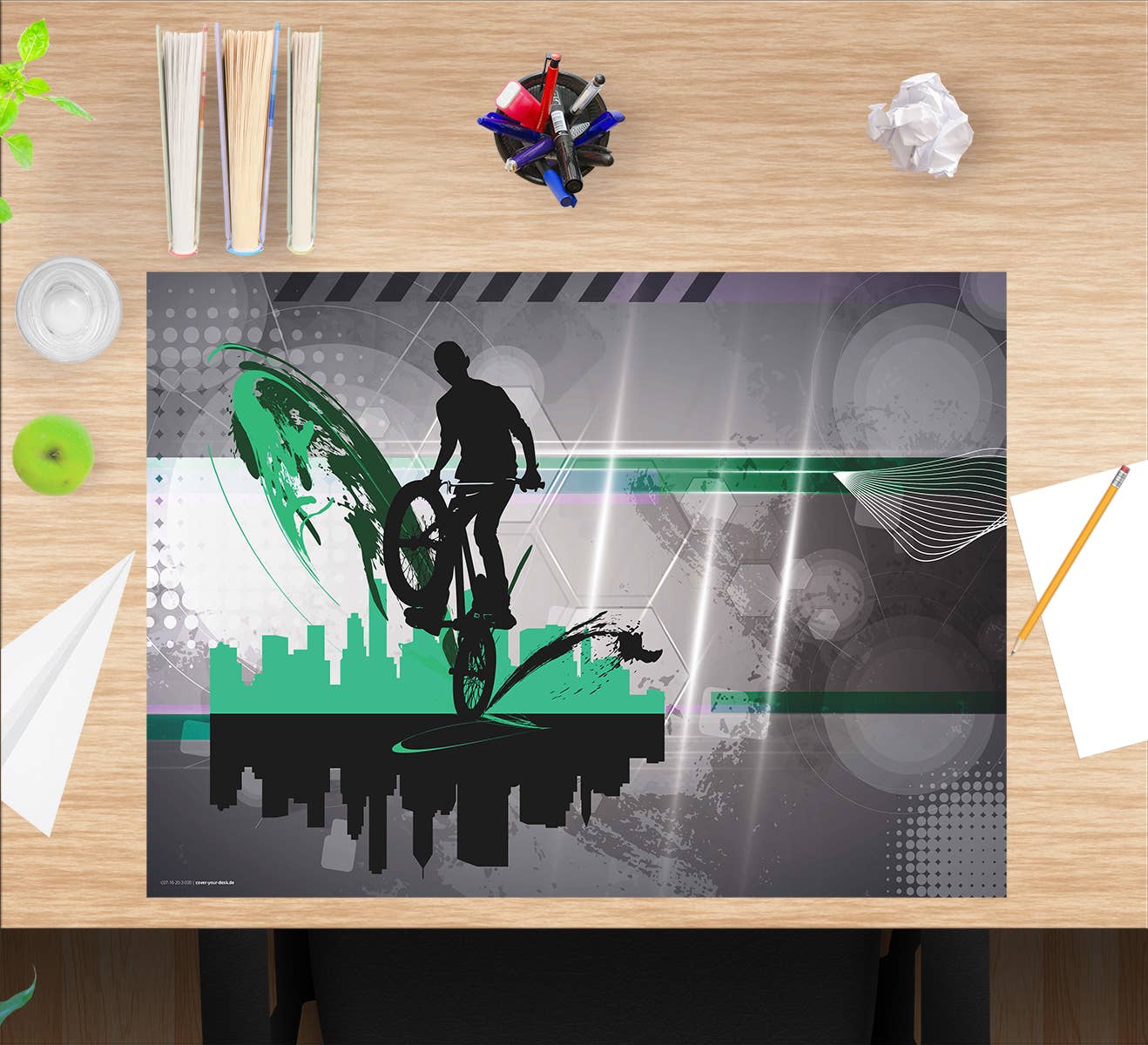 Cover-your-desk's passion is to add color and style to the tables and desks to bring more joy and variety to everyday life. XXL desk pads with mouse pad or placemats rethought with beautiful designs. The desk pads we produce are very trendy. Very high quality vinyl printed with exceptional motifs and great coloured brilliance. We are an ecologically active company that is committed to environmental protection and sustainability. Our products are made from 100% recyclable material which is REACH compliant or meets FSC and specifications. The pressure and production sites are located in Germany and are regional, which is why short transport routes significantly reduce the impact on the climate. Our products are manufactured in collaboration with a social institution, so your purchase helps you maintain the jobs of people with disabilities.