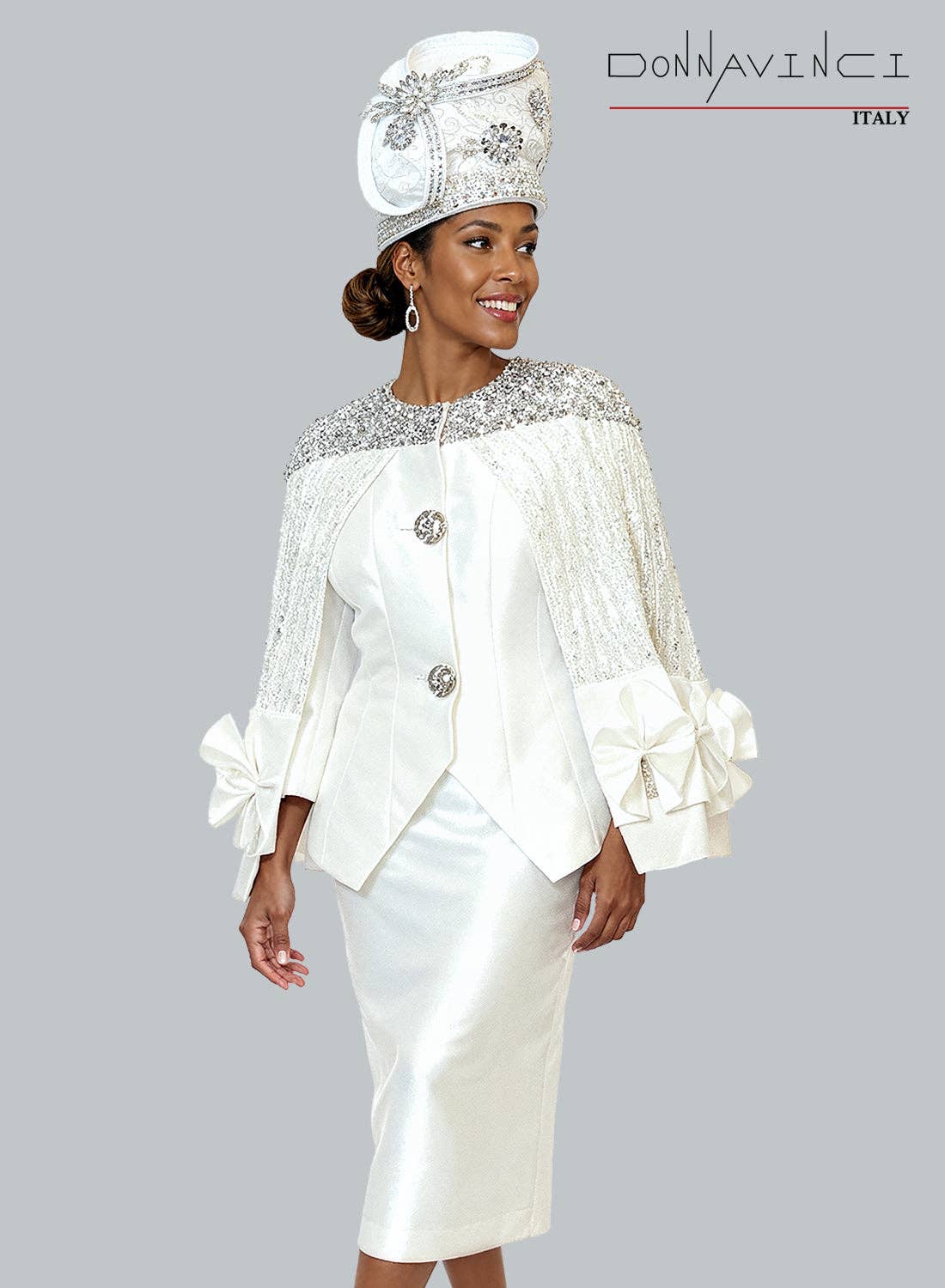 This year Donna Vinci celebrates 45 years as a premier designer of high quality, special occasion, women suits, knit suits, outerwear, sportswear, casual wear, women hats and accessories. Our signature creations consists of DonnaVinci Suits, Donna Vinci Knits, Donna Vinci Couture Hats & DV Jeans by DonnaVinci, . All of our products feature exclusive couture detailing, and a fit that will flatter your customers, be they Misses or Plus Size. Our beautiful church women suits, knit suits and church hats have been endorsed by celebrities such as Vickie Winans, Ann Nesby, Dorinda Clark Cole and Dottie Peoples