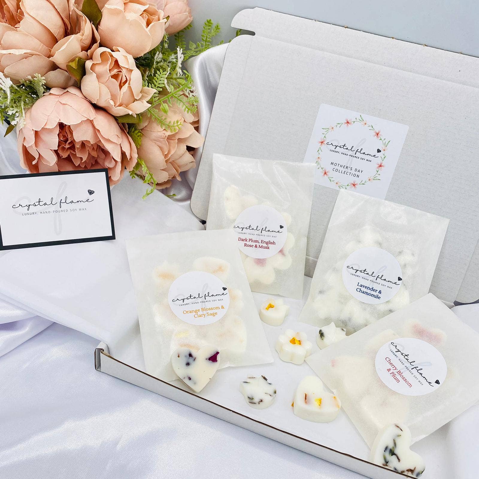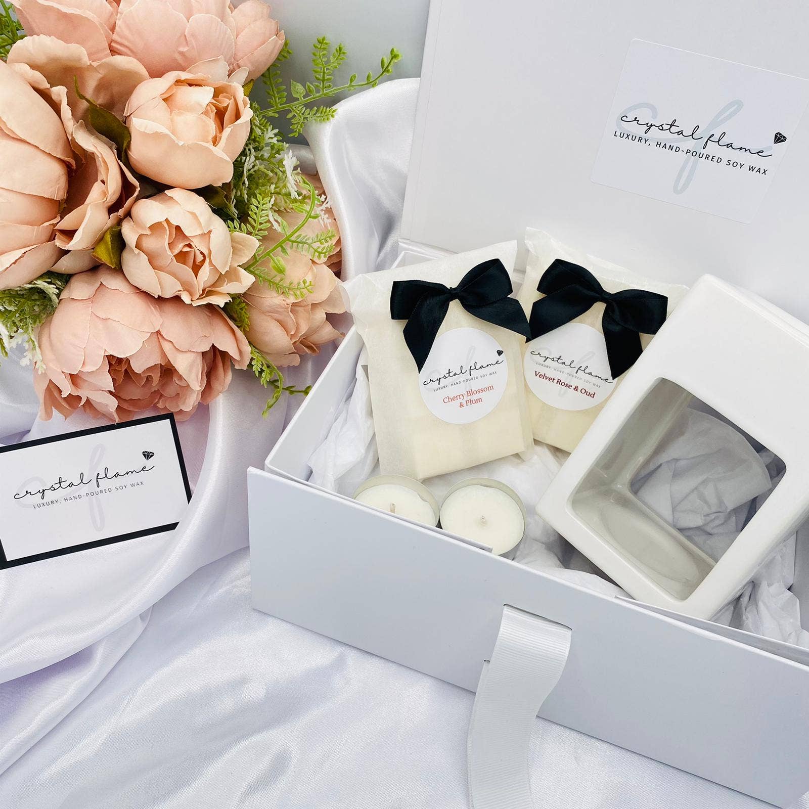 Created from a love of home comforts, warm, cosy nights in, stylish decor and luxurious fragrances. Crystal Flame was established during lockdown 2020, in our home in rural Staffordshire, with the mission of helping others create a tranquil, relaxing environment in their homes by providing luxury products that don't cost the earth. We have a gorgeous range of carefully selected fragrances in soy candles and wax melts, designed to fill homes with beautiful, long-lasting aromas. Our products not only smell amazing but look gorgeous too! Our sleek designs add a touch of luxury to any home and can be re-used and repurposed. Our candles and wax melts are hand-poured in small batches using 100% natural soy wax, high quality fragrance oils and dried botanicals. All of our packaging is fully recyclable and/or biodegradable as we're committed to sourcing the most eco-friendly packaging - it's something really important to us. Our luxurious gift boxes make our products ideal for gifts of all occasions.