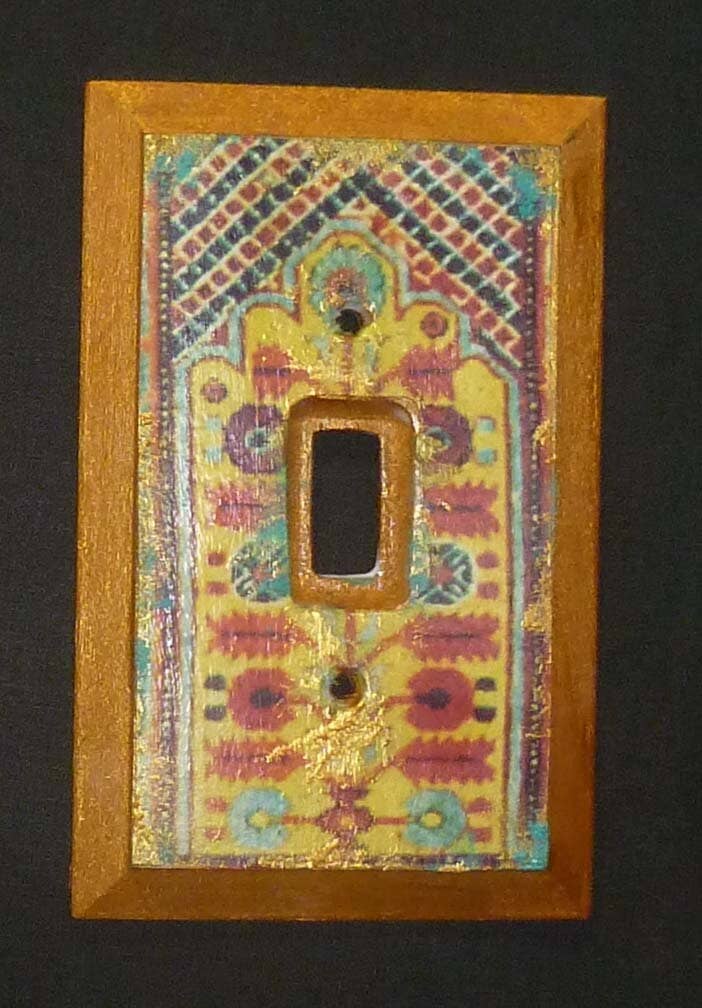 Bazaar Zauber is a celebration of various cultures where I find creative inspiration. Starting with my Moroccan inspired cabinets, followed by decoupage light switch plates and shell dishes utilizing the beauty of antique rugs and tiles.