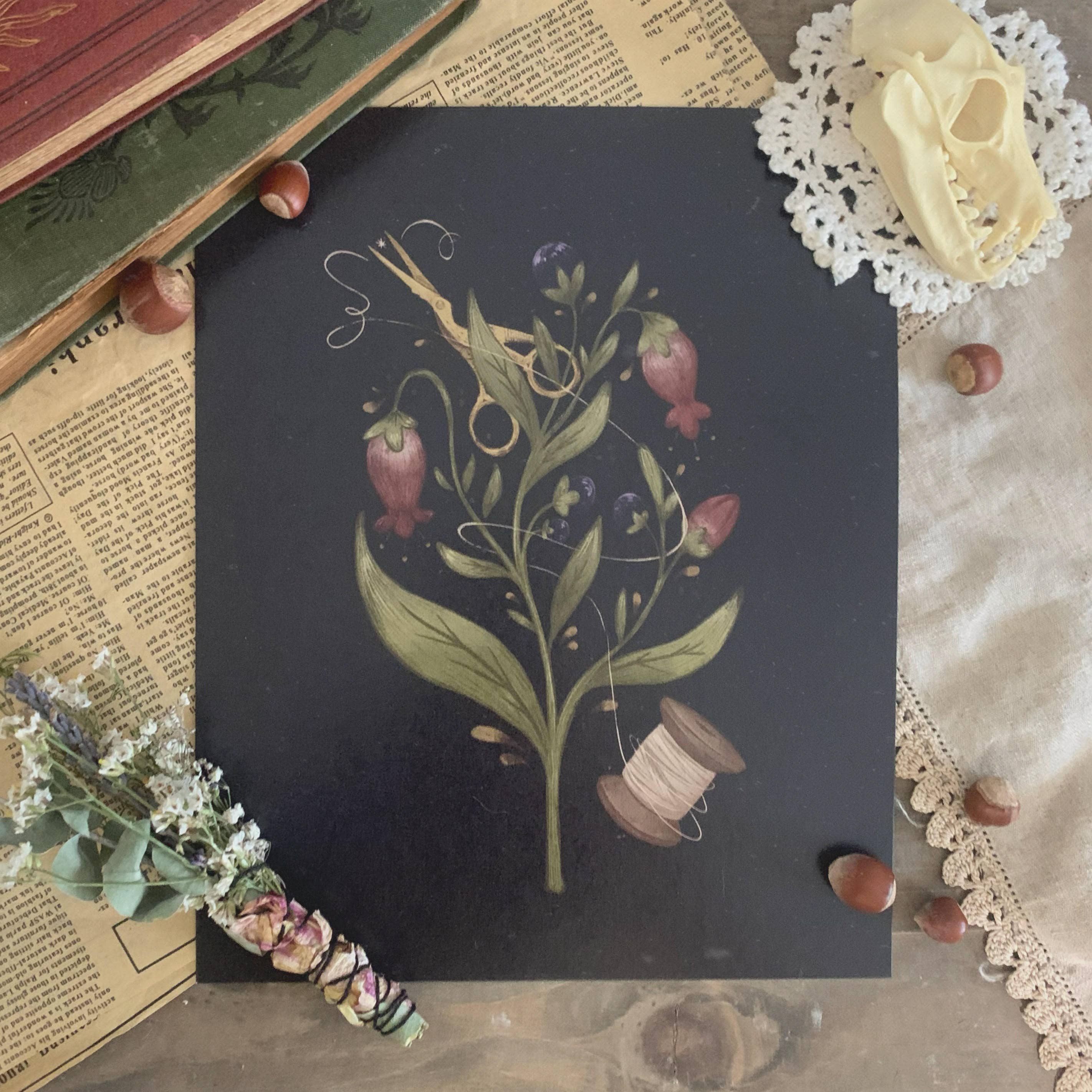 Fogbarrow grew like wildflowers from my three greatest loves: nature, fairytales, and the macabre. A poison garden, entomology specimens, nods at folk tales or folk horror--each watercolor or digital piece tells a story either of the world as we know it or as we may imagine it.