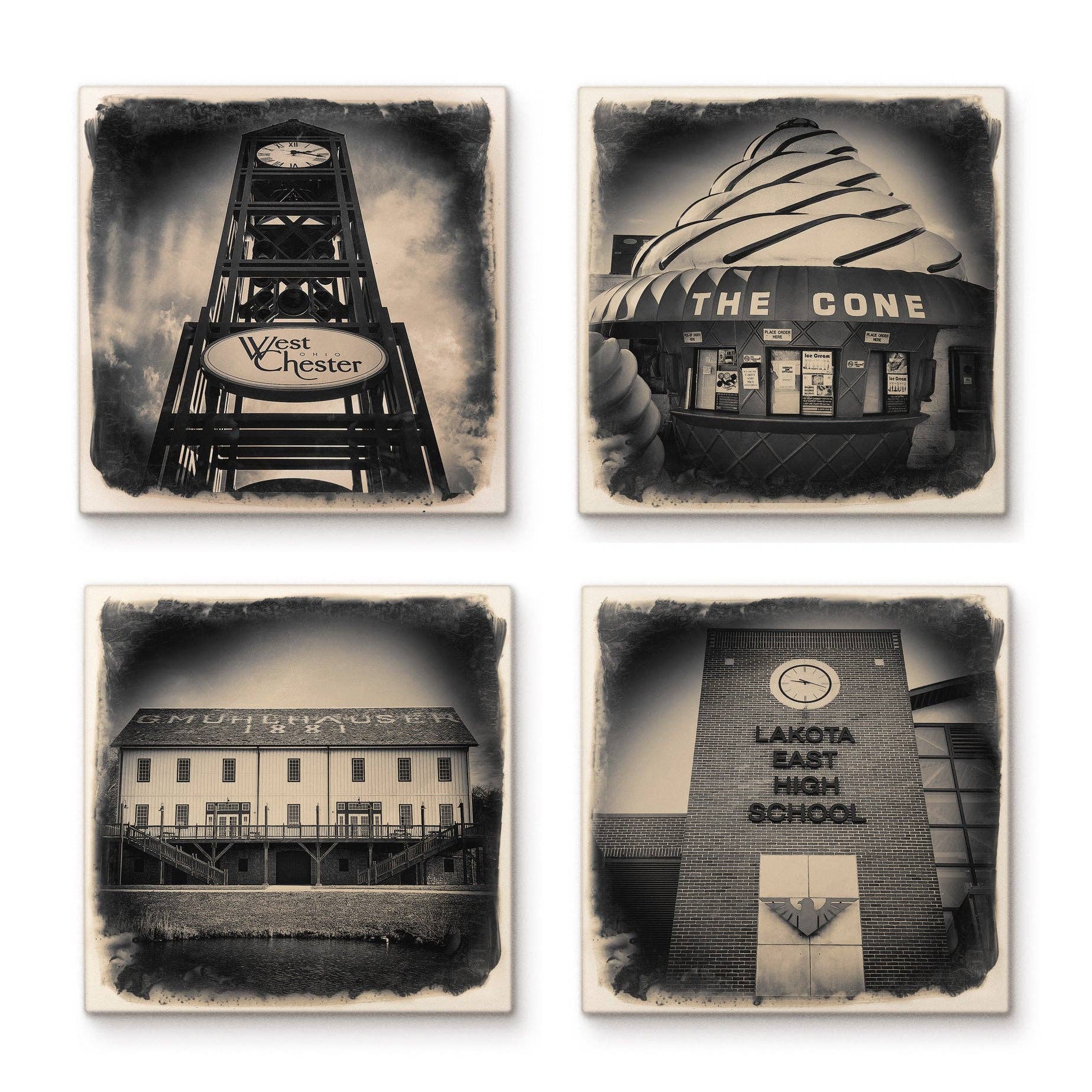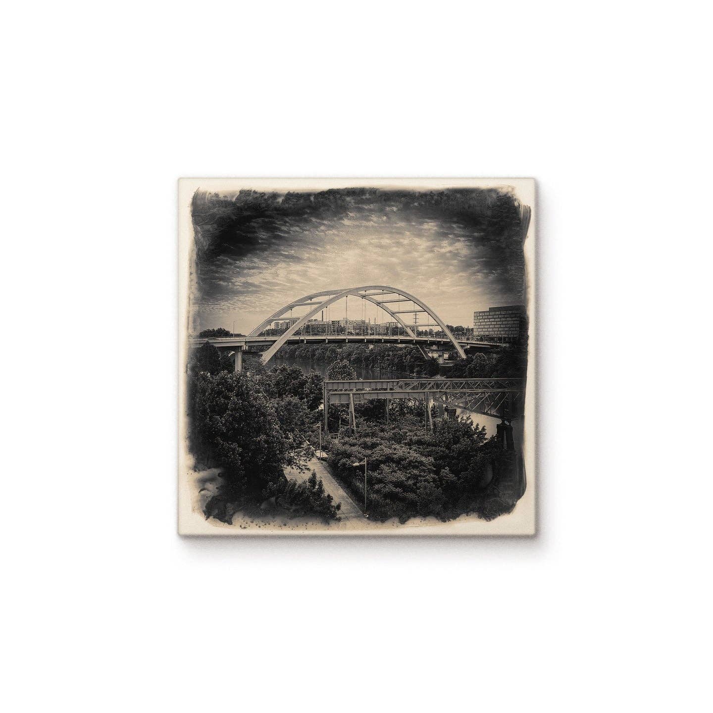 Cityscapes story starts with a neighborhood. As an inner-city lifeguard, I quickly fell in love with the Over-the-Rhine neighborhood in Cincinnati, Ohio—its history, people and architecture opened up a new world for me— it felt like the heart of our city. At the end of my lifeguard shifts, I traded in my lifeguard whistle for my grandfather’s Canon AE-1 camera, and started to document Over-the-Rhine. I returned to live in the neighborhood over 10 years later, and the vibrant people and aesthetics inspired me daily. After stumbling across a dumpster of tiles in Over-the-Rhine, the unassuming size and space of the squares, coupled with an urge to artistically share the unique spirit of my neighborhood, sparked something in me. My twenties taught me the importance of portable art, and the the advent of digital technology changed the expectations of “the frame.” Holding the tossed-out ceramic in my hand, I saw the potential of tile-as-canvas. For over 15 years, I’ve aimed to help preserve history, document change, and celebrate the idea of the place. I lovingly craft my tiles and photos at the Pendleton Art Center— and now I adapt my design for other exciting locales— including Paris, Chicago, Nashville, and more. I’ve found that thinking “local,” like my tiles, both honors and transcends the places we call “home.”