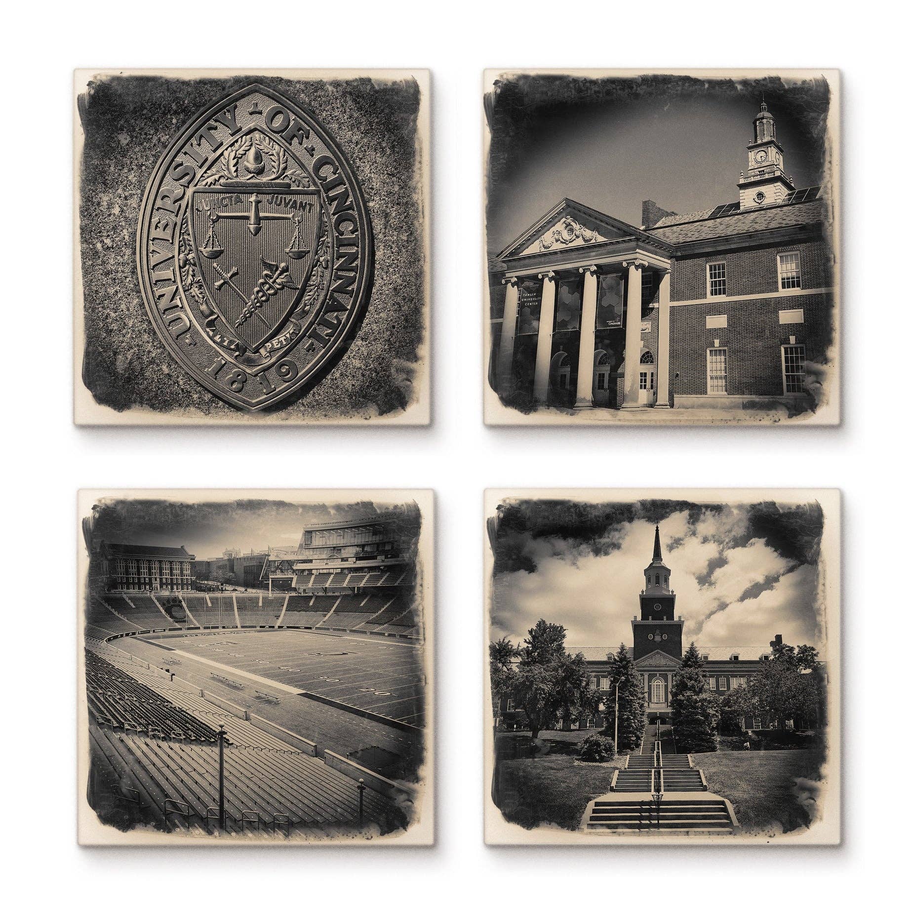 Cityscapes story starts with a neighborhood. As an inner-city lifeguard, I quickly fell in love with the Over-the-Rhine neighborhood in Cincinnati, Ohio—its history, people and architecture opened up a new world for me— it felt like the heart of our city. At the end of my lifeguard shifts, I traded in my lifeguard whistle for my grandfather’s Canon AE-1 camera, and started to document Over-the-Rhine. I returned to live in the neighborhood over 10 years later, and the vibrant people and aesthetics inspired me daily. After stumbling across a dumpster of tiles in Over-the-Rhine, the unassuming size and space of the squares, coupled with an urge to artistically share the unique spirit of my neighborhood, sparked something in me. My twenties taught me the importance of portable art, and the the advent of digital technology changed the expectations of “the frame.” Holding the tossed-out ceramic in my hand, I saw the potential of tile-as-canvas. For over 15 years, I’ve aimed to help preserve history, document change, and celebrate the idea of the place. I lovingly craft my tiles and photos at the Pendleton Art Center— and now I adapt my design for other exciting locales— including Paris, Chicago, Nashville, and more. I’ve found that thinking “local,” like my tiles, both honors and transcends the places we call “home.”