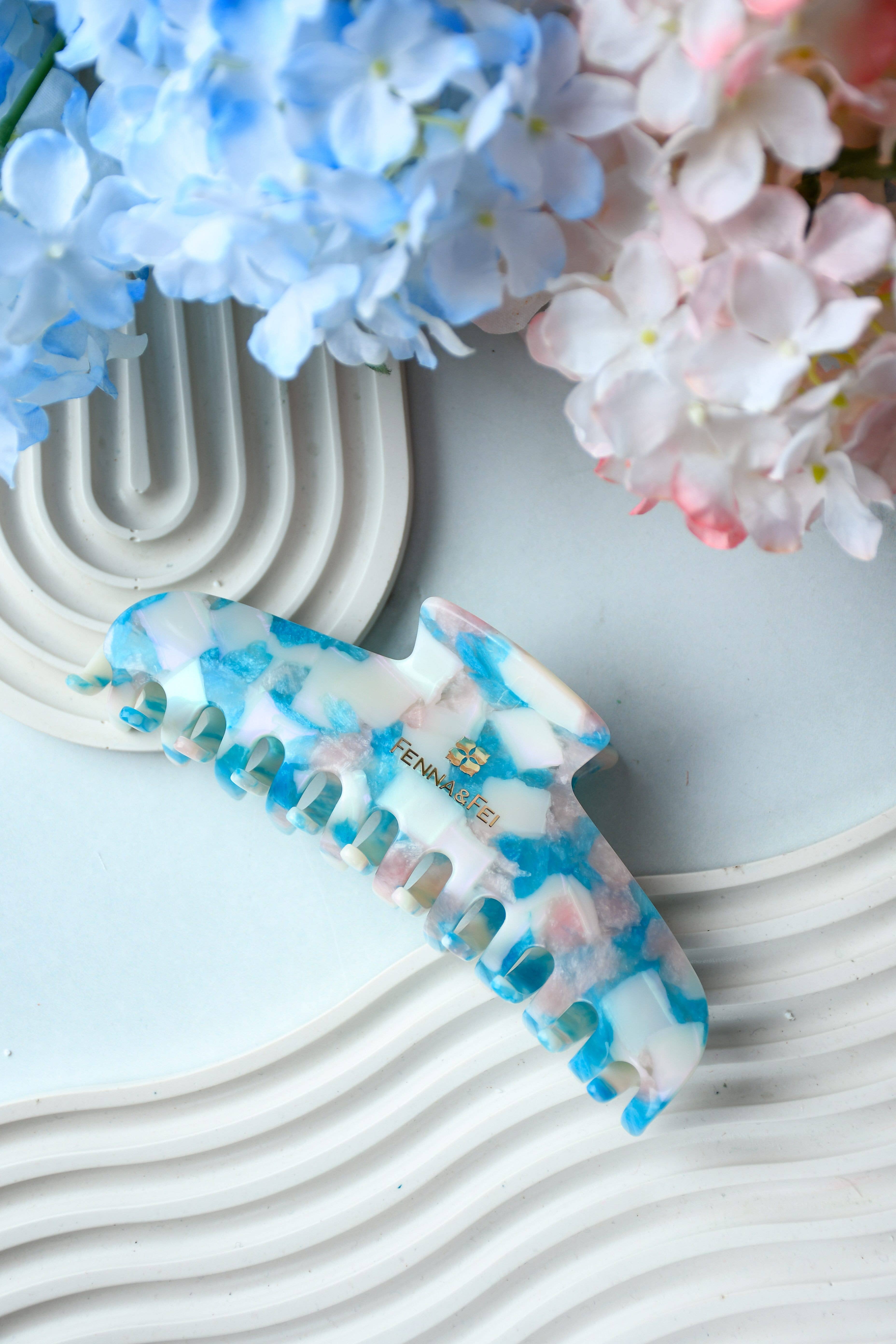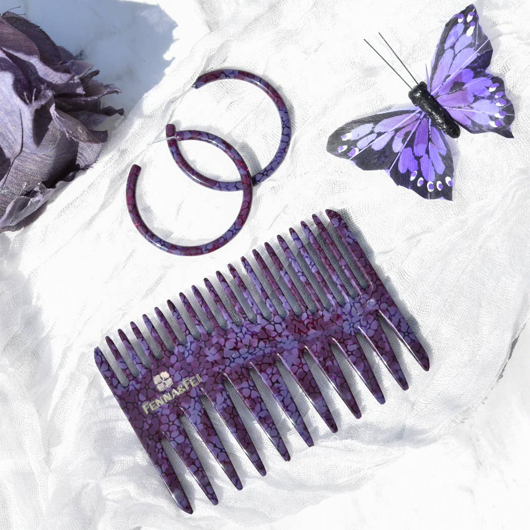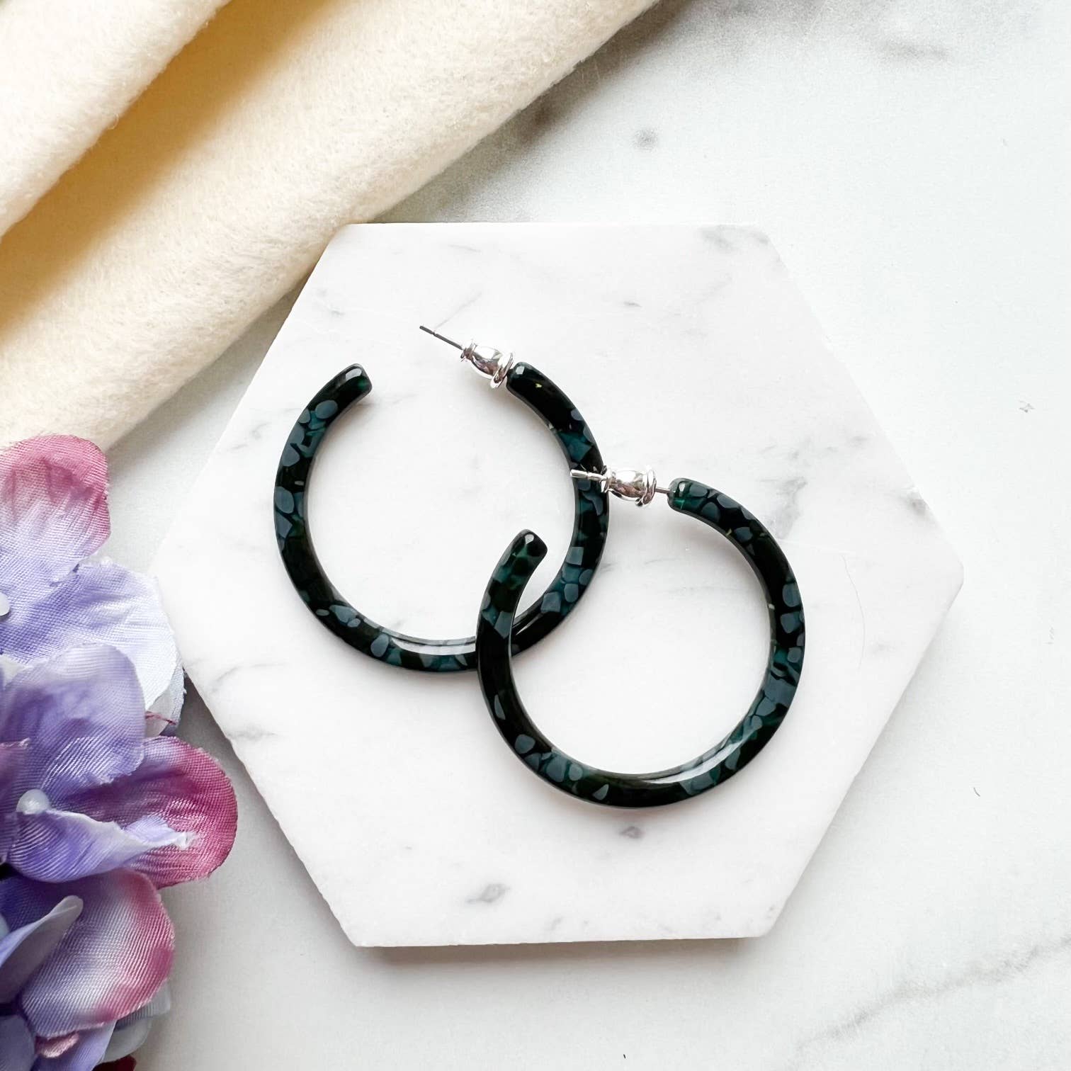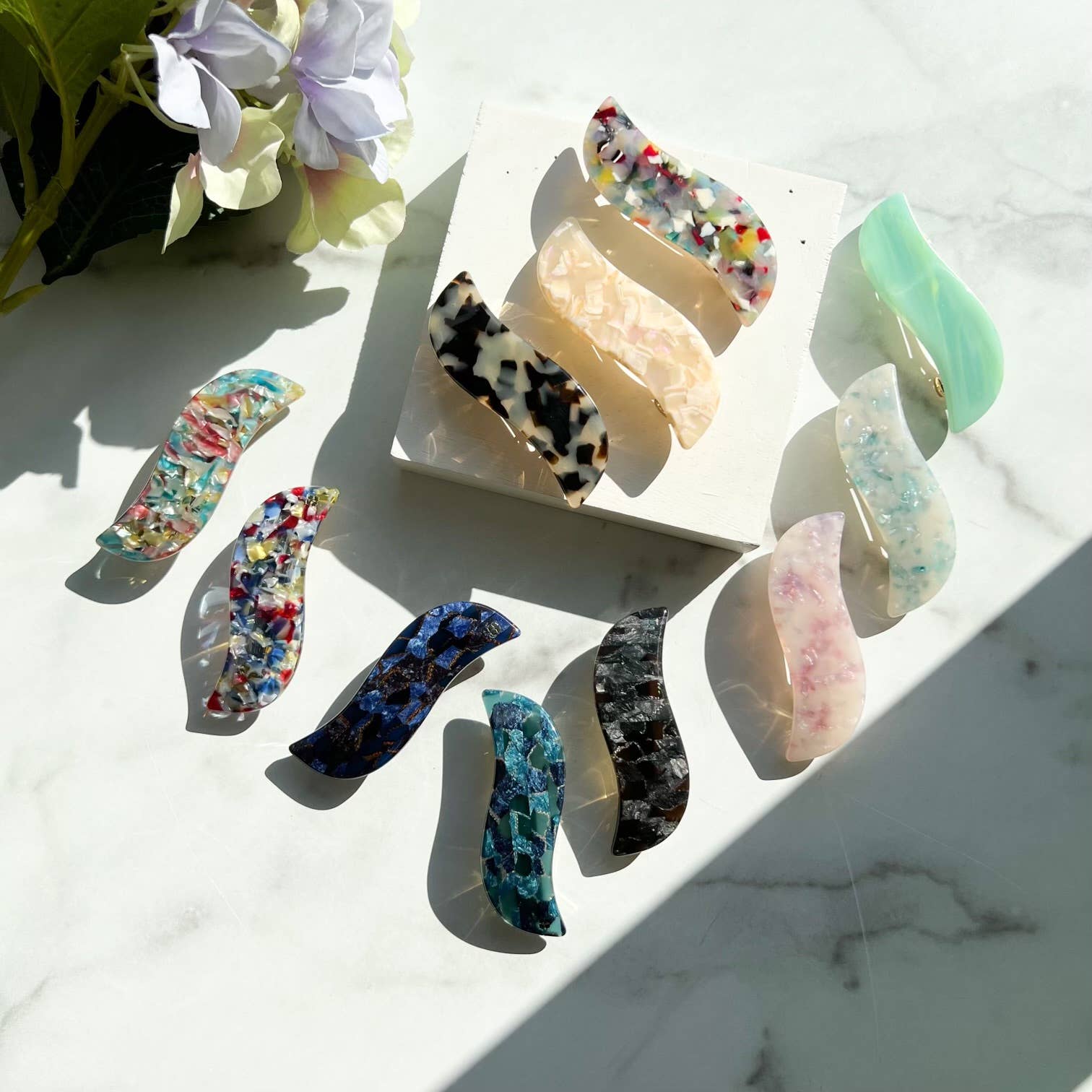 Committed to sustainable fashion, we create jewelry and hair accessories using a plant-based and biodegradable plastic called cellulose acetate. Cellulose acetate is made from cotton pulp and acetic acid. It is non-petroleum based and eco-friendly! Our acetate material is ethically sourced from Italy and Japan. All of our items are designed by me and crafted in our studios in China and Boise, Idaho. All pieces are affixed with hypoallergenic surgical steel posts and/or .925 sterling silver.