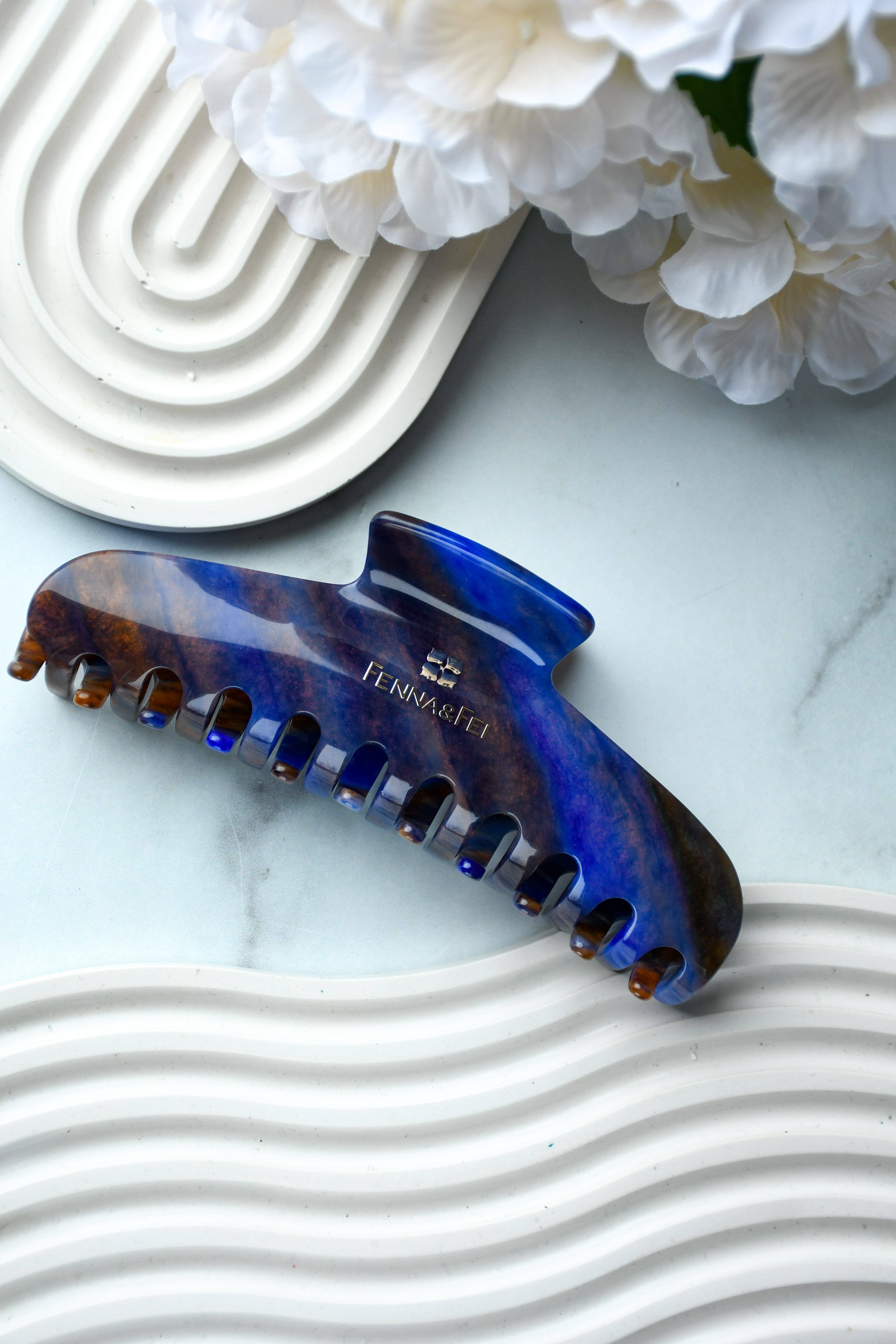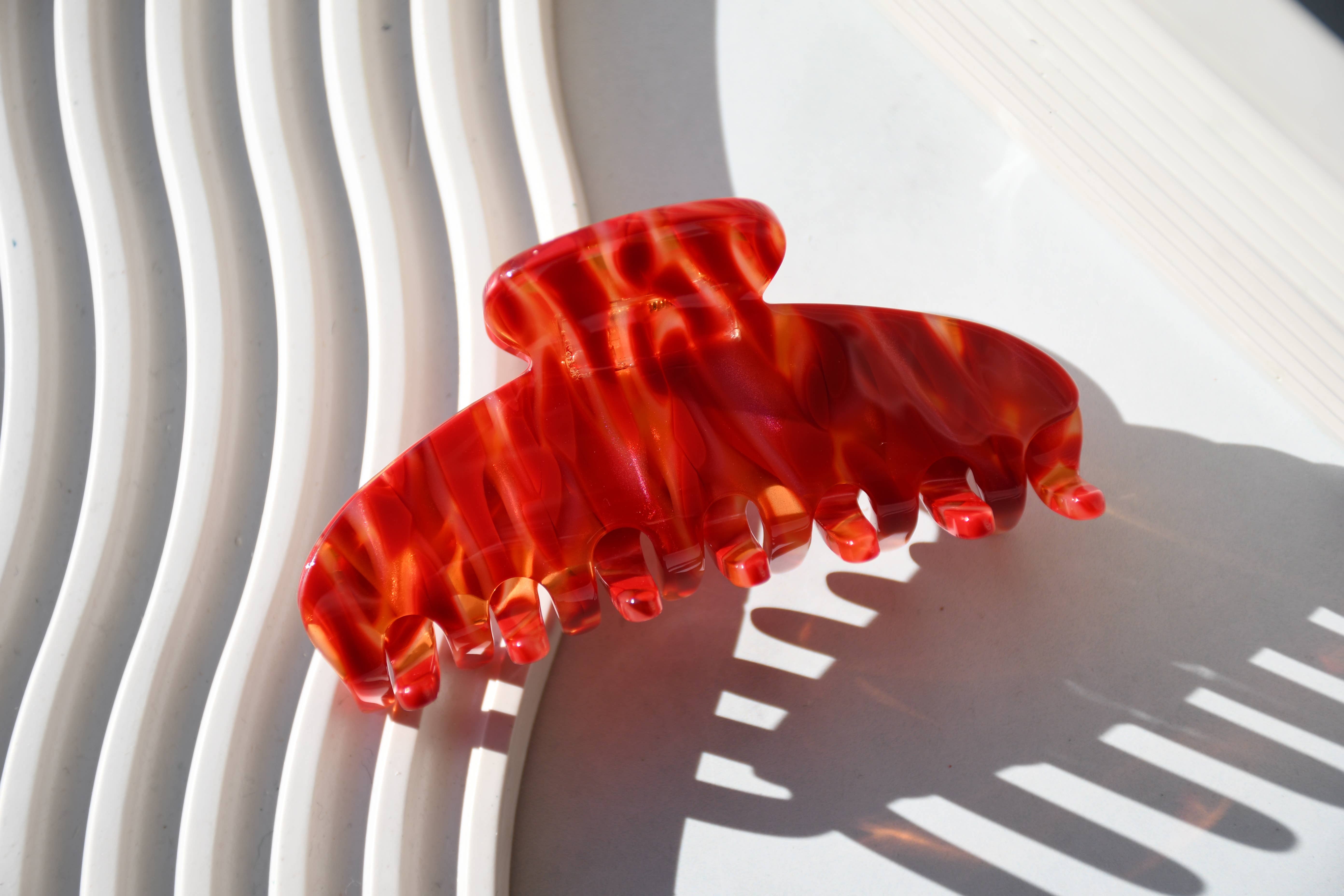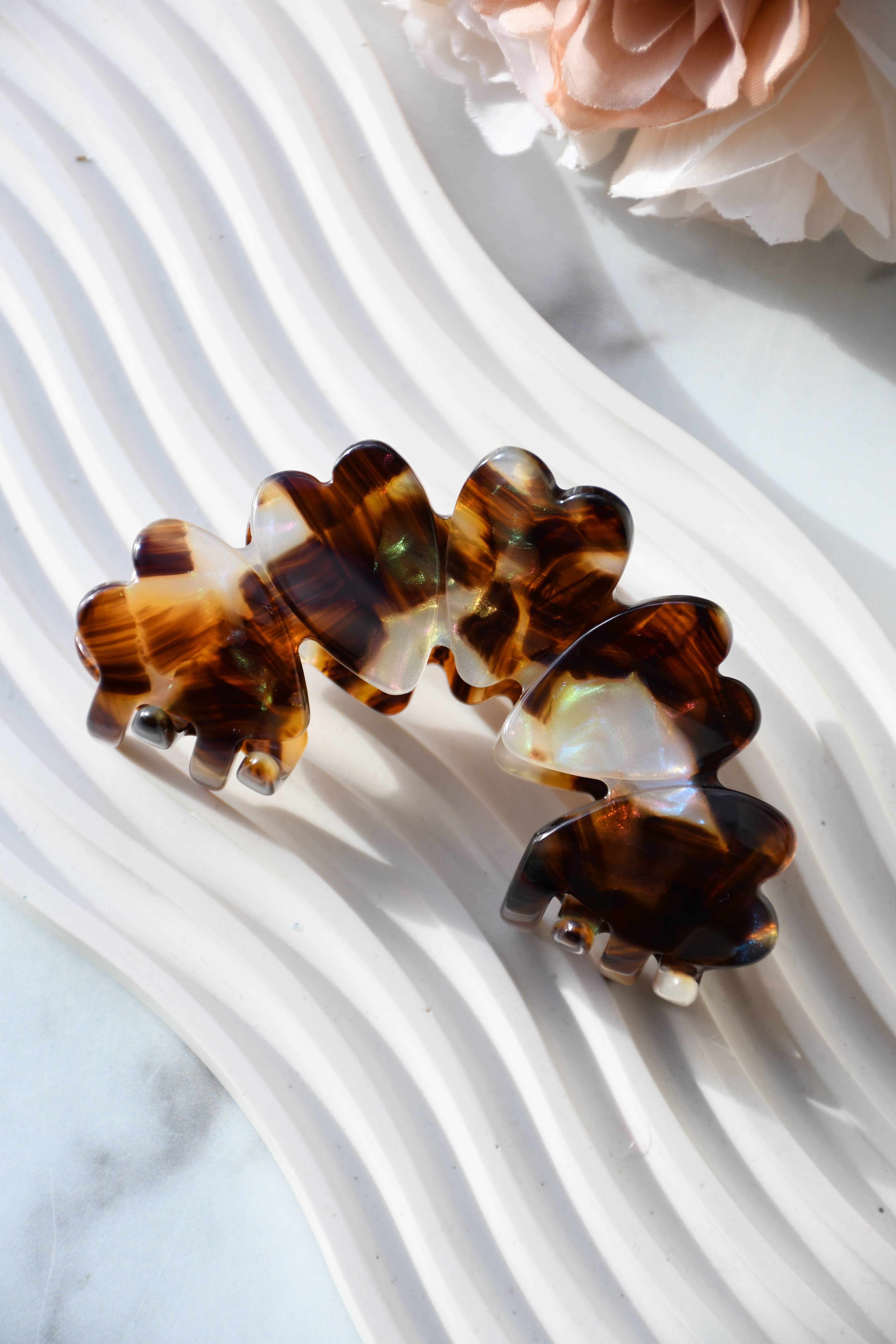 Committed to sustainable fashion, we create jewelry and hair accessories using a plant-based and biodegradable plastic called cellulose acetate. Cellulose acetate is made from cotton pulp and acetic acid. It is non-petroleum based and eco-friendly! Our acetate material is ethically sourced from Italy and Japan. All of our items are designed by me and crafted in our studios in China and Boise, Idaho. All pieces are affixed with hypoallergenic surgical steel posts and/or .925 sterling silver.