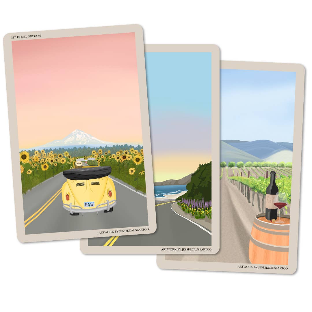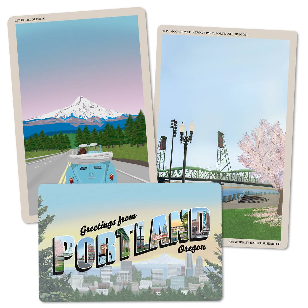 JessBecauseArtCo features illustrations of the west coast, and the occasional travel destination. Each drawing has special details, from the perspective of someone who really knows and loves the place featured. In the era of digital communication, I love to send postcards and notes in the mail. It brings back a personal connection, and I carefully select the card the recipient will appreciate the most. I found it increasingly more difficult to find the right cards, especially when traveling, so I decided to create the cards I want to send, using my original illustrations and design background. Whether you are looking for a visual representation of a place you’re dreaming about visiting, or want a souvenir of a good memory, I create art for you. I hope that you find your own special significance in these illustrations!