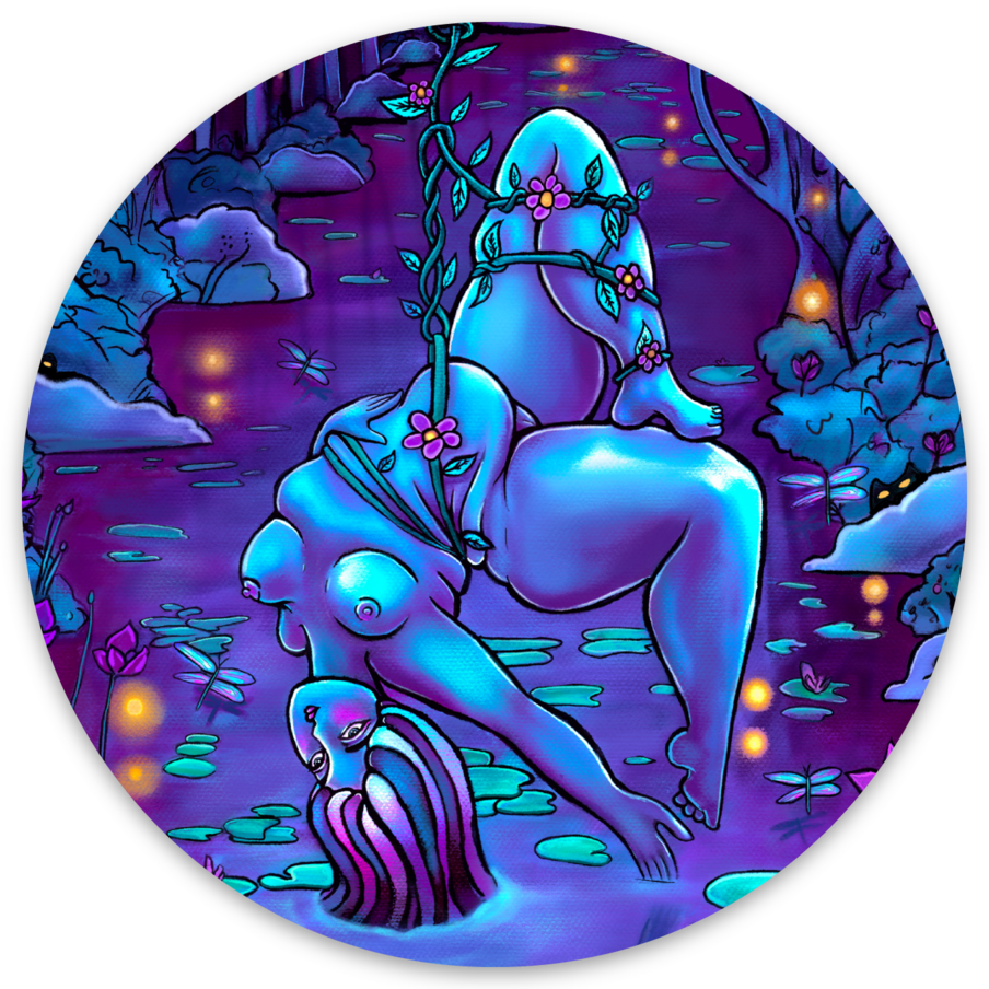 My art is a joyful and spiritual rebellion to a society that continues to ask me to hide or shrink in all capacites. Primarily figurative, my art features soft, fat, nude bodies, referencing memories of my own reflection and mirroring elements of nature that exist without apology. I continue to make and share my art because it is something I wish I had always had access to, and something l still need to see.