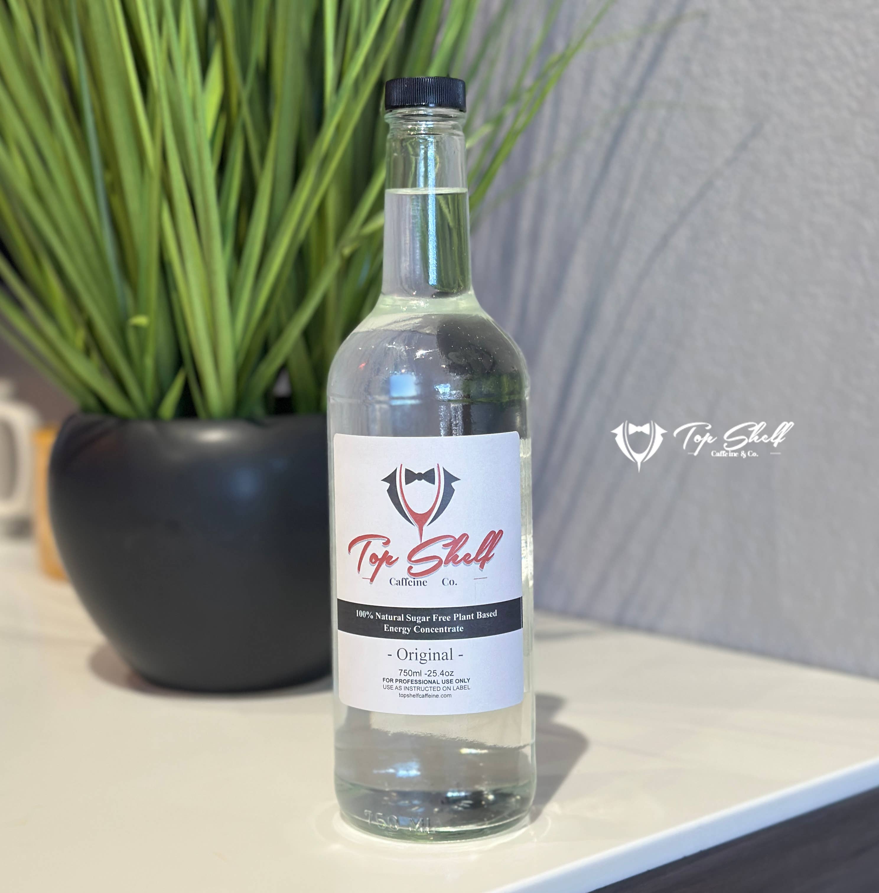 In simple terms, Top Shelf Caffeine is your best caffeine solution for your retail location. Each 750 ML bottle contains 25 servings of 80mg caffeine (The average cup of coffee and 8oz can of energy has 80-95mg of caffeine.) Just add to any hot or iced beverage at your establishment. After serving canned energy drinks to our retail clients we strived to find other options ad finally decided to produce our own product that fits the needs of a experienced barista. Craft energy drinks will never be the same now that we have created the ability to control the amount of carbs, sugar, caffeine and flavor goes into our clients drinks.