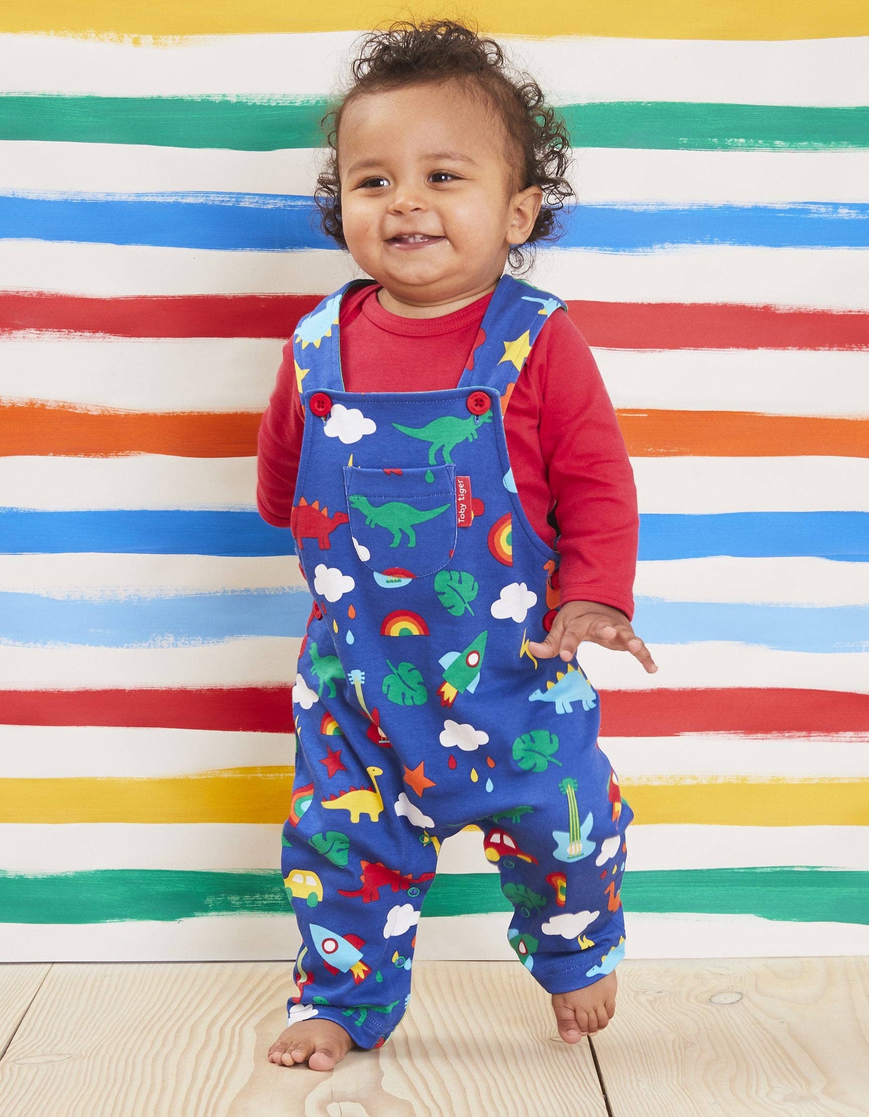 We're the UK’s best and brightest organic childrenswear company, specialising in fun appliques and timeless designs that can be worn again and again. TIMELESS QUALITY From baby bodies, dribble bibs and knot hats to sleepsuits, dungarees and party dresses, every design is mindful of practicality and comfort. Whether it’s colourful easy poppers, adjustable shoulder straps or super soft reversible fabric, they’ll keep little ones happy and be your go-to outfits again and again. QUALITY AND FUN CHILDRENSWEAR Our organic clothes are instantly recognisable: whether it’s our signature stripes or soft, fun character appliques that tell a story for curious little imaginations, they’re bound to raise a smile on faces of kids and grown-ups everywhere. HELP SAVE THE PLANET, GO ORGANIC! Shopping with Toby Tiger means you’re supporting ethical working and doing your bit to protect the planet – whilst letting kids be kids in super fun, vibrant clothing.