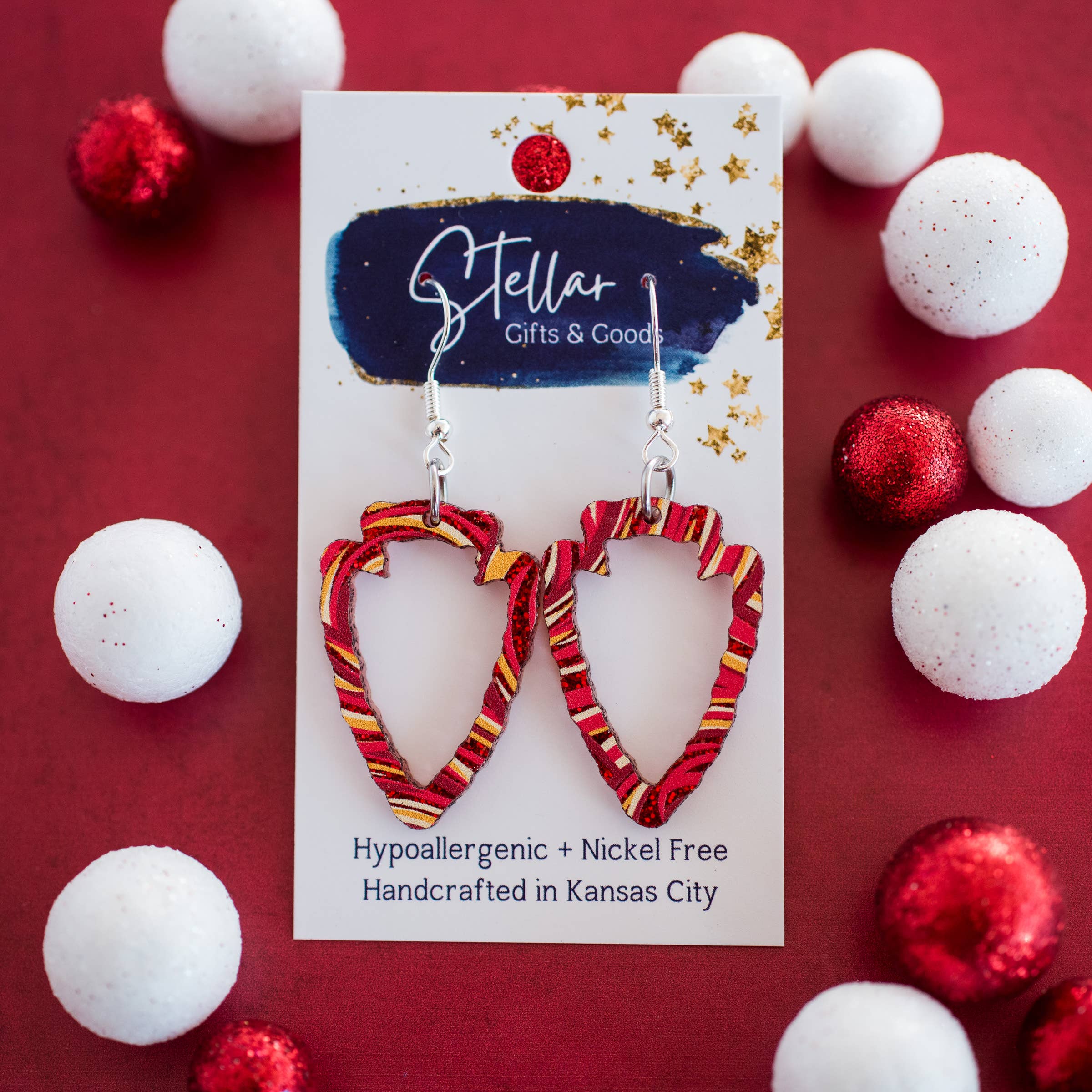 We're best known for our KC🏈 earrings, but our collection also boasts a playful mix of seasonal and everyday styles! Lightweight and nickel-free, because we believe in making a statement without sacrificing comfort!