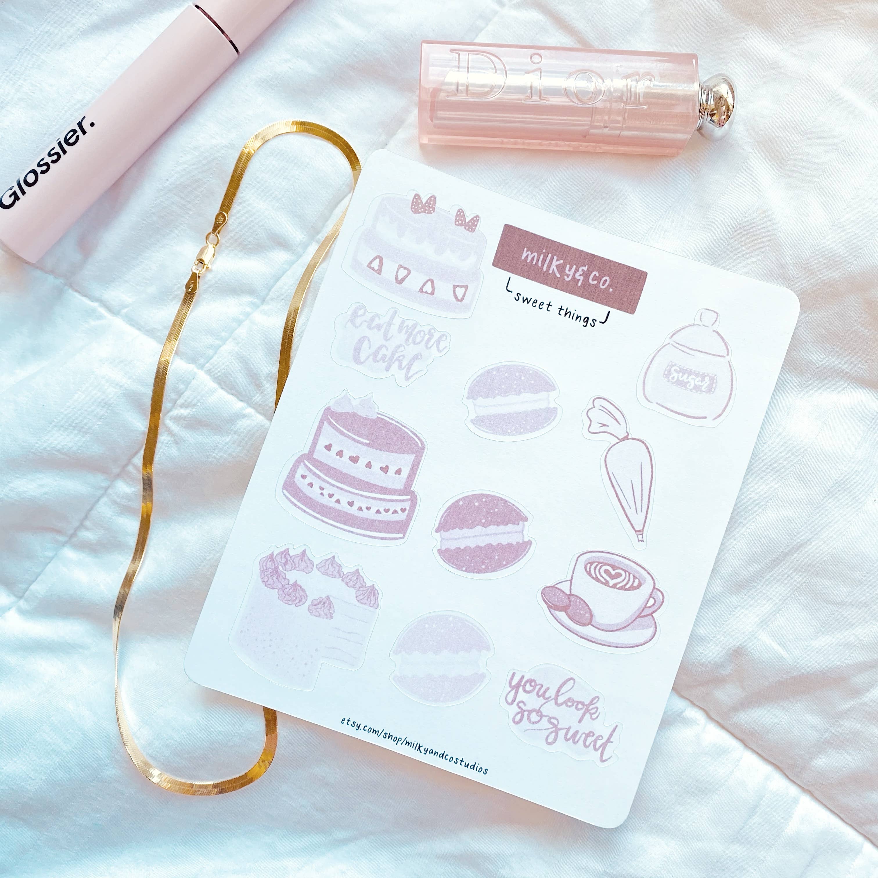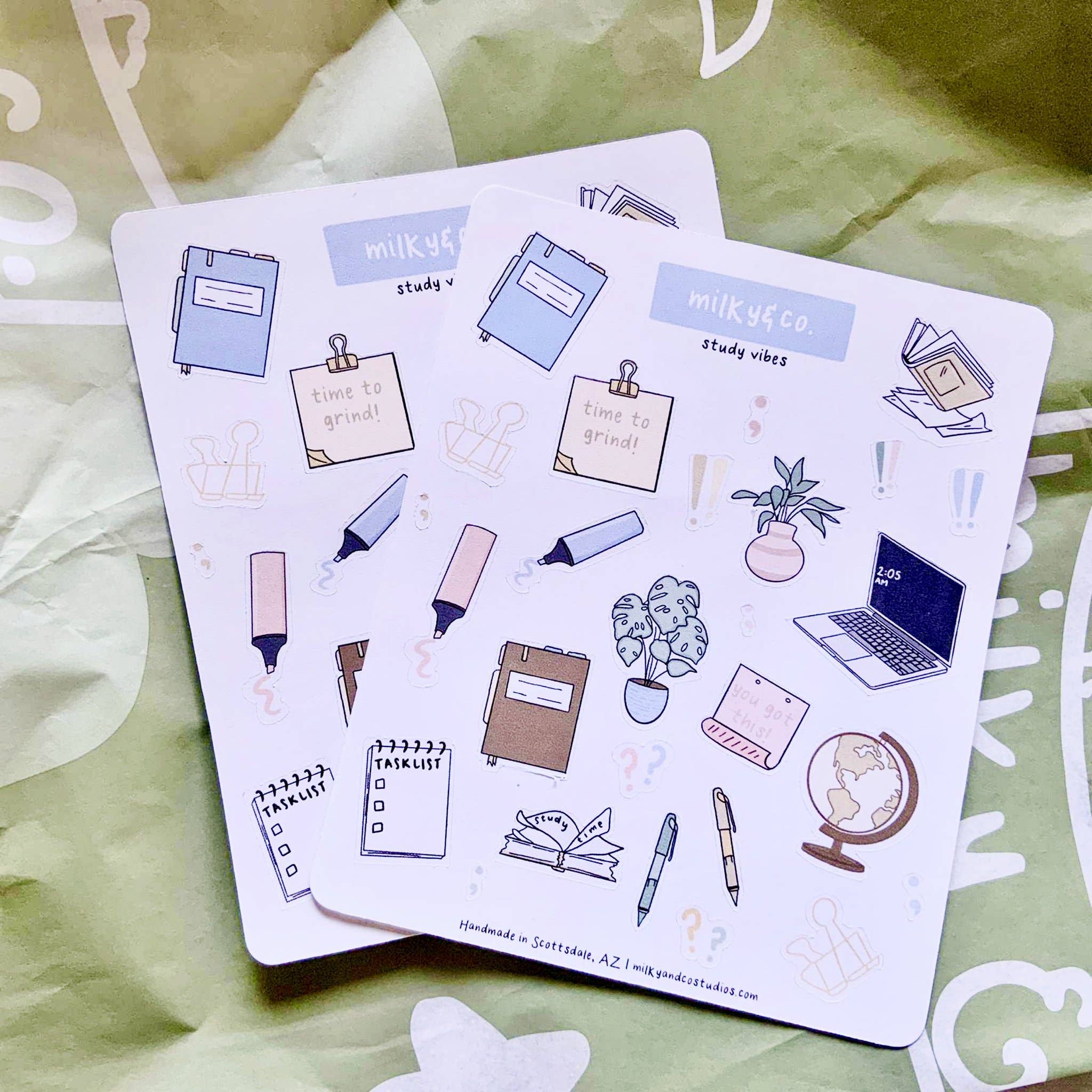 Stationery had always been a uniting mutual love between my sister and me growing up. Being 8 years apart, there were few things we could connect on in terms of life stages - but the two things that have always stayed constant were our love for paper goods and for our mini schnauzer, Milky. Having had a bullet journal and always loving art, many friends and family encouraged us to take our art a step further to create physical paper goods so that people around the world could enjoy our products as much as we loved making them - and that's how Milky & Co. Studios was born in June 2020. For almost a year, we have been designing, printing, cutting, and packaging all orders from our humble studio in Scottsdale, AZ. As we have begun to grow and scale, with the help of our parents, we have "family time" while creating and building something we love to do - all under the supervision of Milky, of course! We pride ourselves in our homemade goods that are thought out and often have a underlying story behind them and hope to continue bringing stationery serotonin to your front door. :)