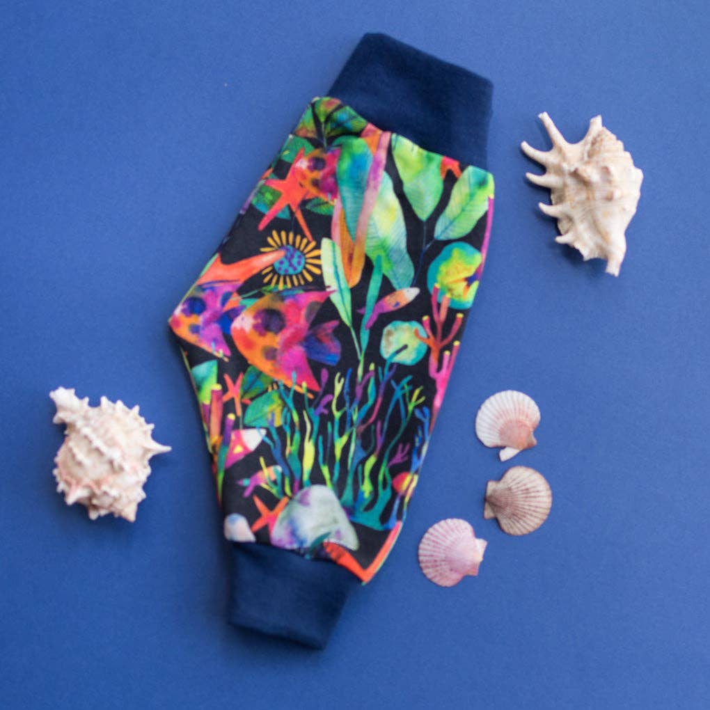 We are an Irish Childrenswear brand who care deeply about what we produce. We create unique colourful designs strongly influenced by nature with lots of colour. We have a strong emphasis on gender neutral clothing and comfort. Our clothes are made from top quality organic cotton jersey which washes well, wears well and stands the test of time allowing our clothes to be passed on. We believe children & babies should be comfortable in the clothes they wear, unrestricted in their movements and explorations and inspired when they see their colourful outfits. We make a range of leggings, dungarees, shorts, sweaters, dresses, hats, bibs and mittens. We have a large returning customer base who shop with us as they know they will get lots of wear out of our clothes and they are reassured that they are making a good choice for their childs delicate skin and at the same time the planet. We proudly design, cut and sew our products here in Ireland in small batches avoiding waste and mass production.
