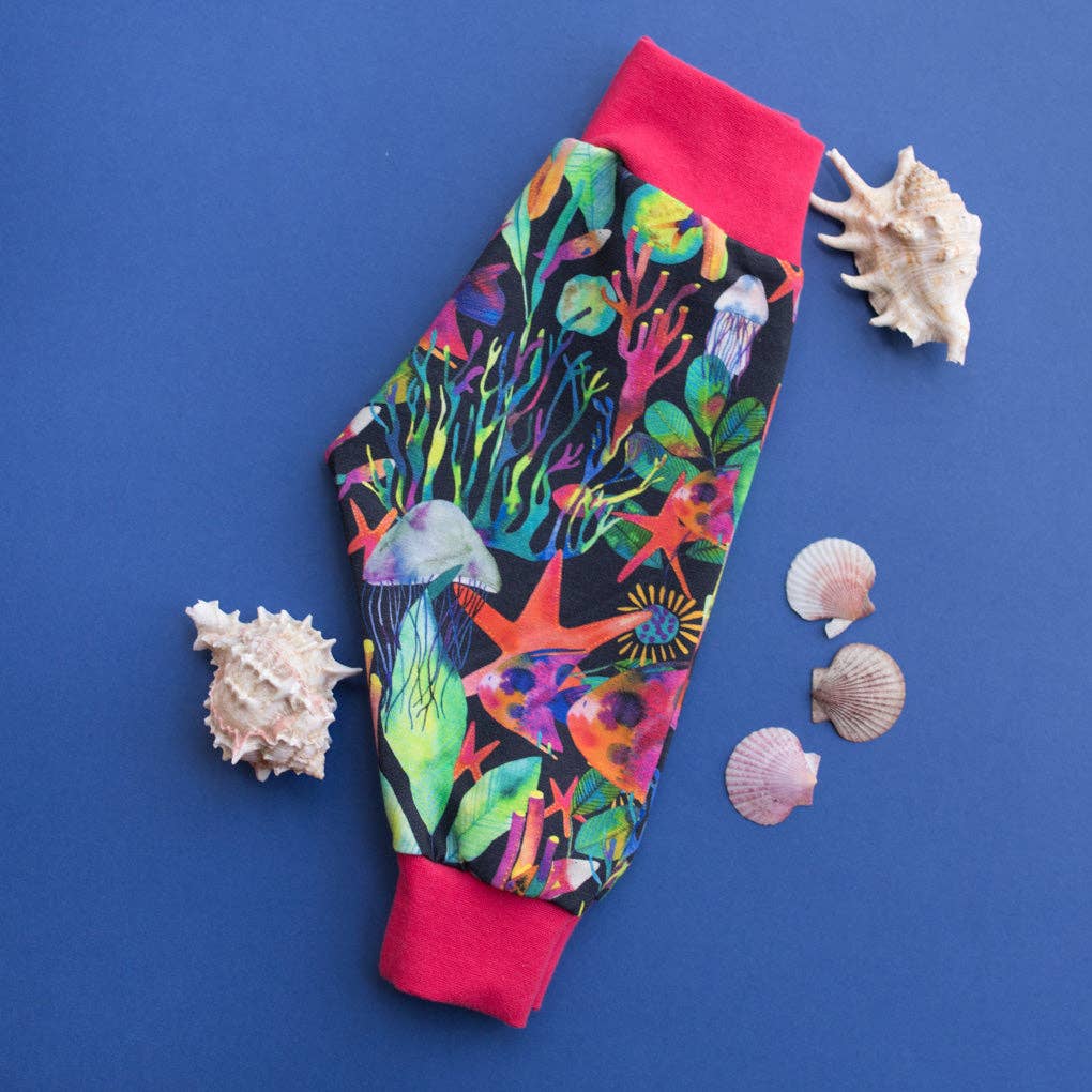 We are an Irish Childrenswear brand who care deeply about what we produce. We create unique colourful designs strongly influenced by nature with lots of colour. We have a strong emphasis on gender neutral clothing and comfort. Our clothes are made from top quality organic cotton jersey which washes well, wears well and stands the test of time allowing our clothes to be passed on. We believe children & babies should be comfortable in the clothes they wear, unrestricted in their movements and explorations and inspired when they see their colourful outfits. We make a range of leggings, dungarees, shorts, sweaters, dresses, hats, bibs and mittens. We have a large returning customer base who shop with us as they know they will get lots of wear out of our clothes and they are reassured that they are making a good choice for their childs delicate skin and at the same time the planet. We proudly design, cut and sew our products here in Ireland in small batches avoiding waste and mass production.