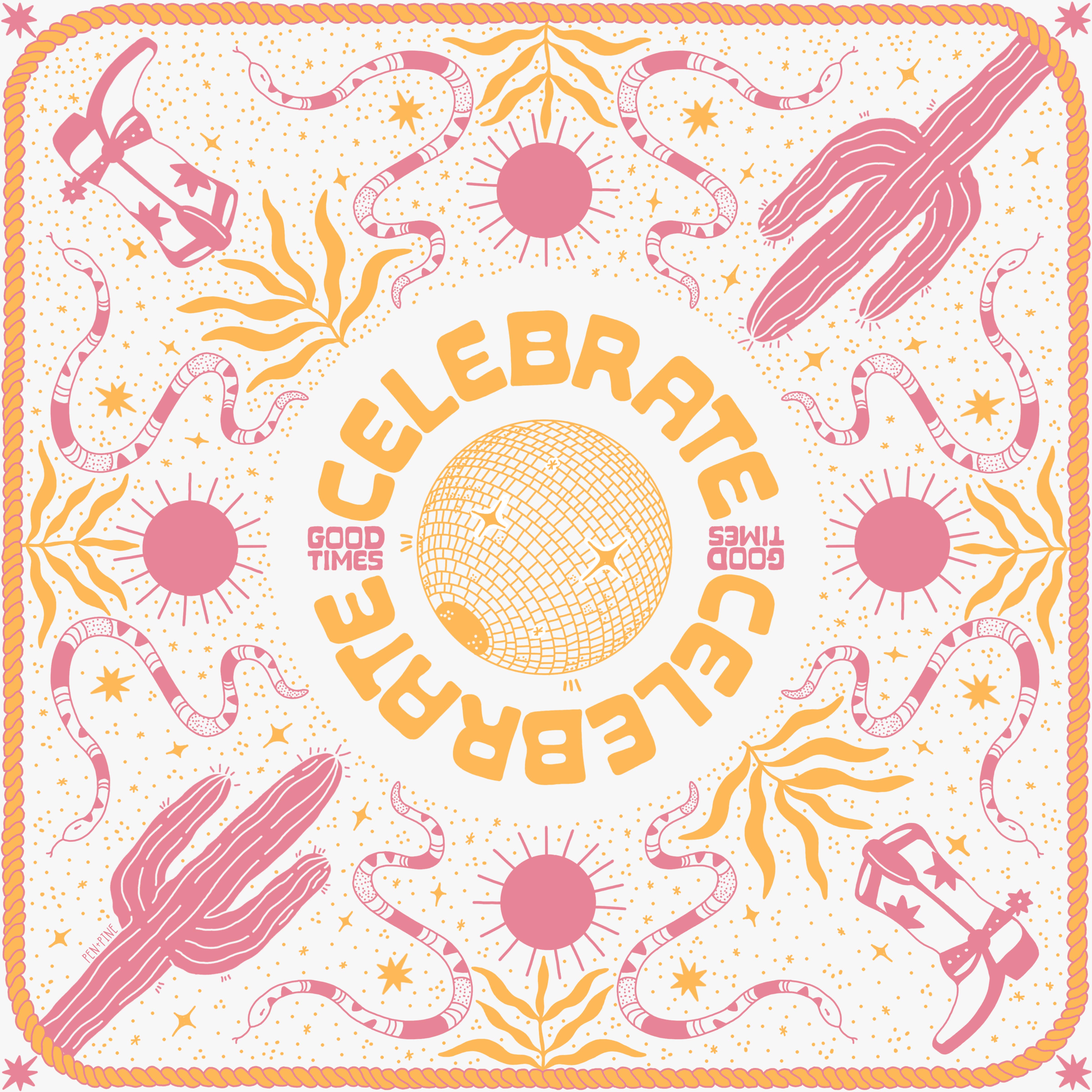 Hi - I am Jenna Catsos, a Northern California-based illustrator and the woman behind Pen+Pine. I am known for my whimsical line drawings of plants, maps, and everyday objects. My line of illustrated goodies includes cards, prints, bandanas, mugs, buttons, and more! Pen+Pine is my small illustration company focused on creating swoon-worthy, handmade designs. I hand-draw all of the illustrations, then turn them into products for you to give, receive, and cherish. The aim of Pen+Pine is to use illustration as a way to remind us all to slow down, follow our curiosity, and appreciate the whimsical nature of everyday objects. I hope my illustrations make you stop, smile, and look closer. I run Pen+Pine from the small shed-turned-studio in my garden on the redwood coast in Northern California. All of my work begins by putting pen to paper, then I draw it digitally using my iPad and Apple Pencil. The combination of simple hand-drawn lines with the accuracy of digital tools helps create my signature clean, crisp illustrations. I founded Pen+Pine with the intention of creating high-quality products in the most sustainable way possible. Everything is printed and produced locally, using recycled materials and eco-conscious processes. All packaging is reused or recycled, and even the "plastic" sleeves for cards are plant-based and compostable.